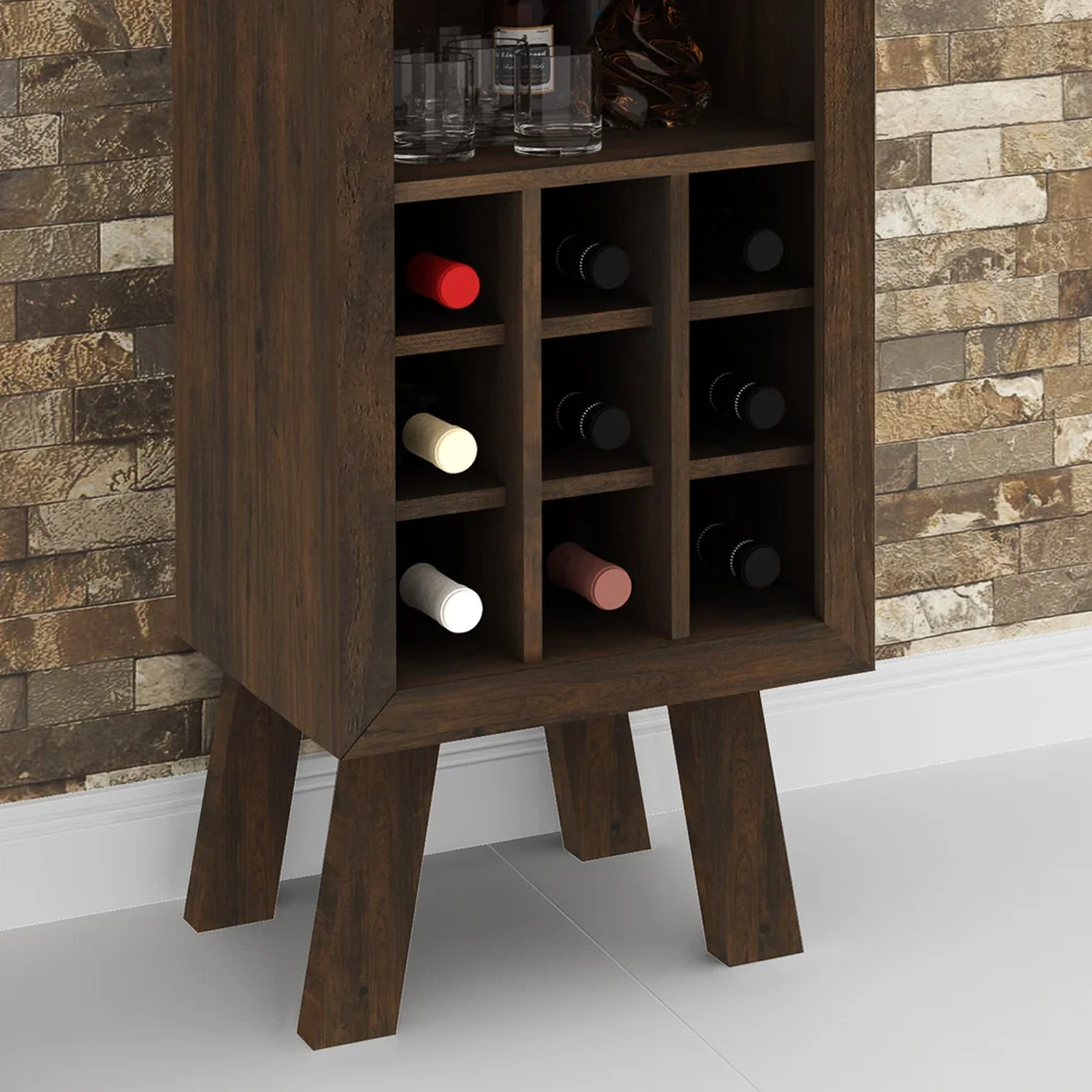A Adega Bar AD5000 Rústico tem tudo o que precisa para deixar sua casa a nível de capa de revista! Isso mesmo, pois ela conta com estrutura em MDP com acabamento em pintura UV de qualidade para conferir durabilidade e resistência. Mas o que encanta nesse aparador adega com certeza são os detalhes, pois ela possui 1 prateleira, espaço para 9 garrafas e suporte metálico para taças. Incrível, né? Aliás, possui pés em madeira que dão um toque retrô, podendo fazer parte da sala de estar, da sala de jantar ou do cômodo você preferir!!