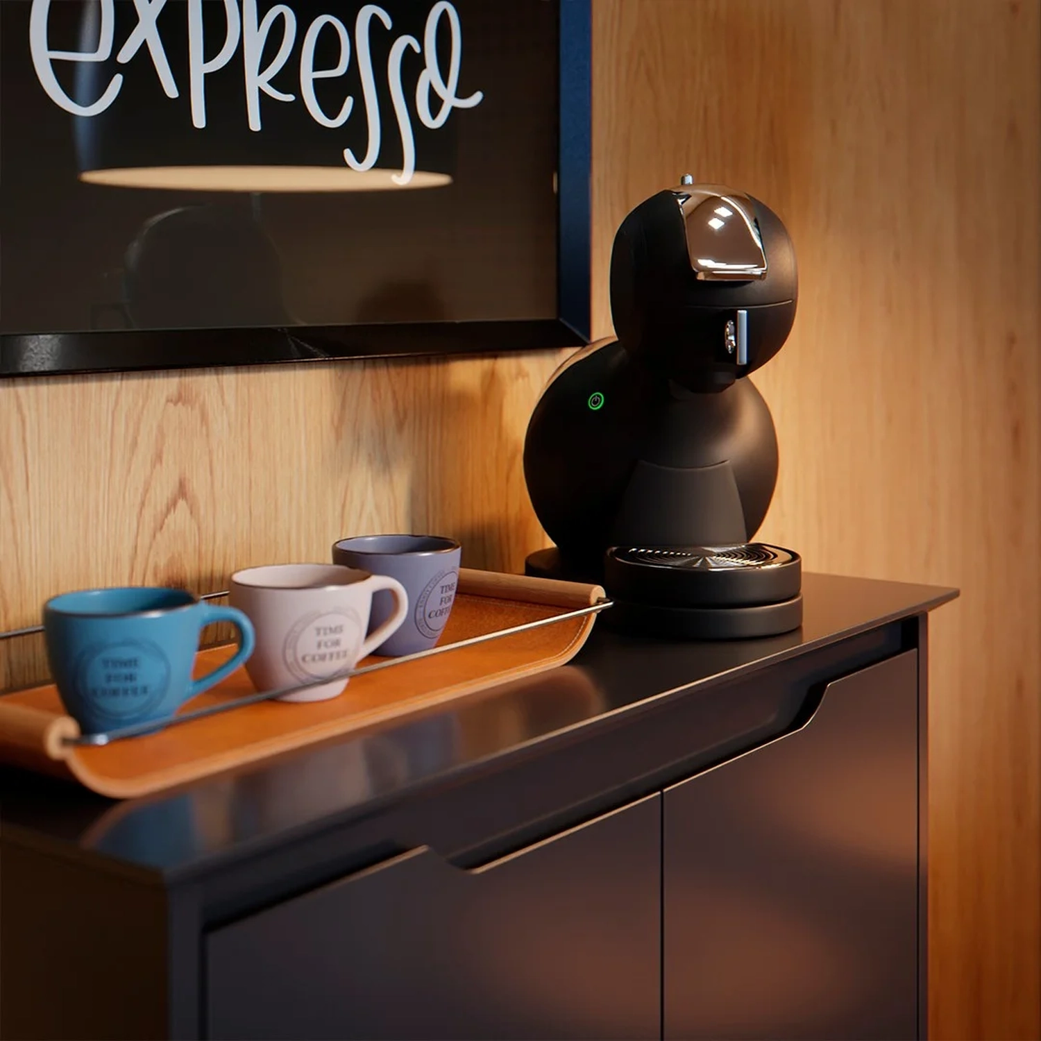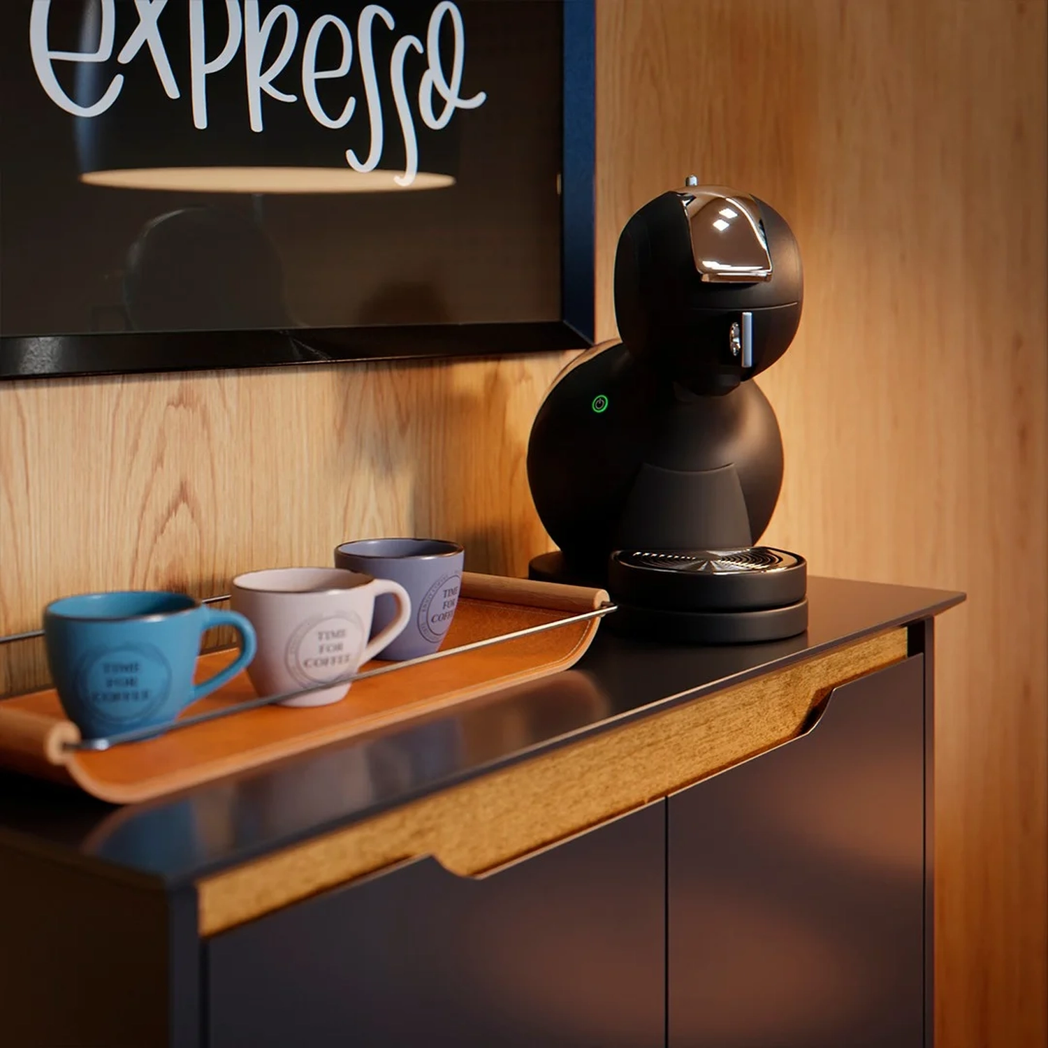 Mas não para por aqui; afinal, é um balcão aparador versátil, podendo ser aproveitado para criar essa mesma sensação em outros ambientes, como sala de jantar, escritório, recepção, etc. Então, não importa se você é um amante de café expresso, cappuccino ou um tradicional cafezinho coado, esse Cantinho do Café está preparado para acompanhar todas as suas preferências de bebidas e espaço.