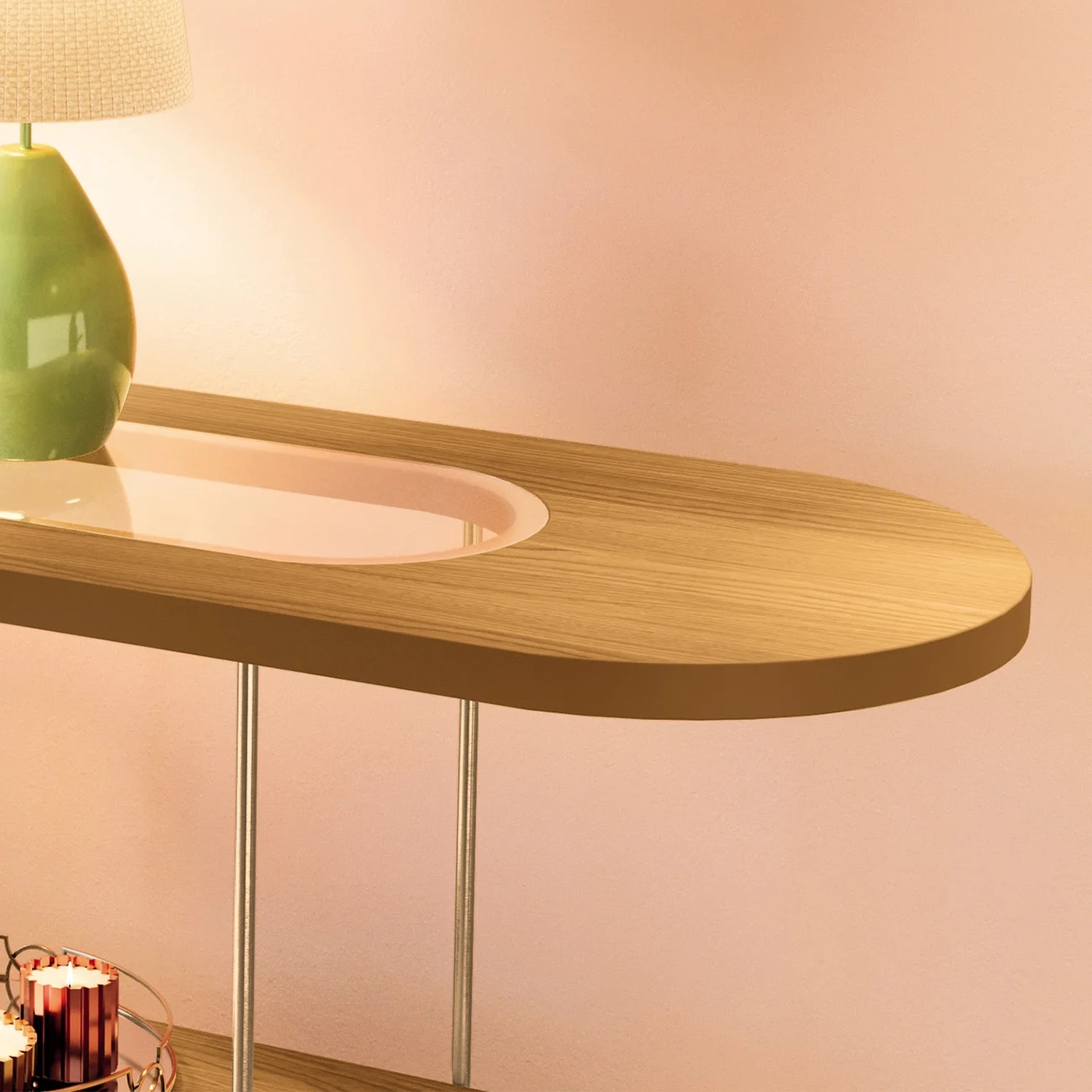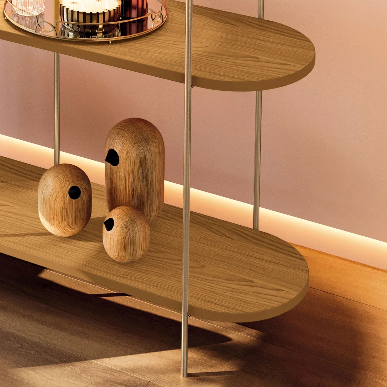 Este Aparador de Sala com Prateleiras Pé Metal Infinity Cinamomo, da HB Móveis é produzido com materiais de qualidade, garantindo durabilidade e um acabamento impecável.