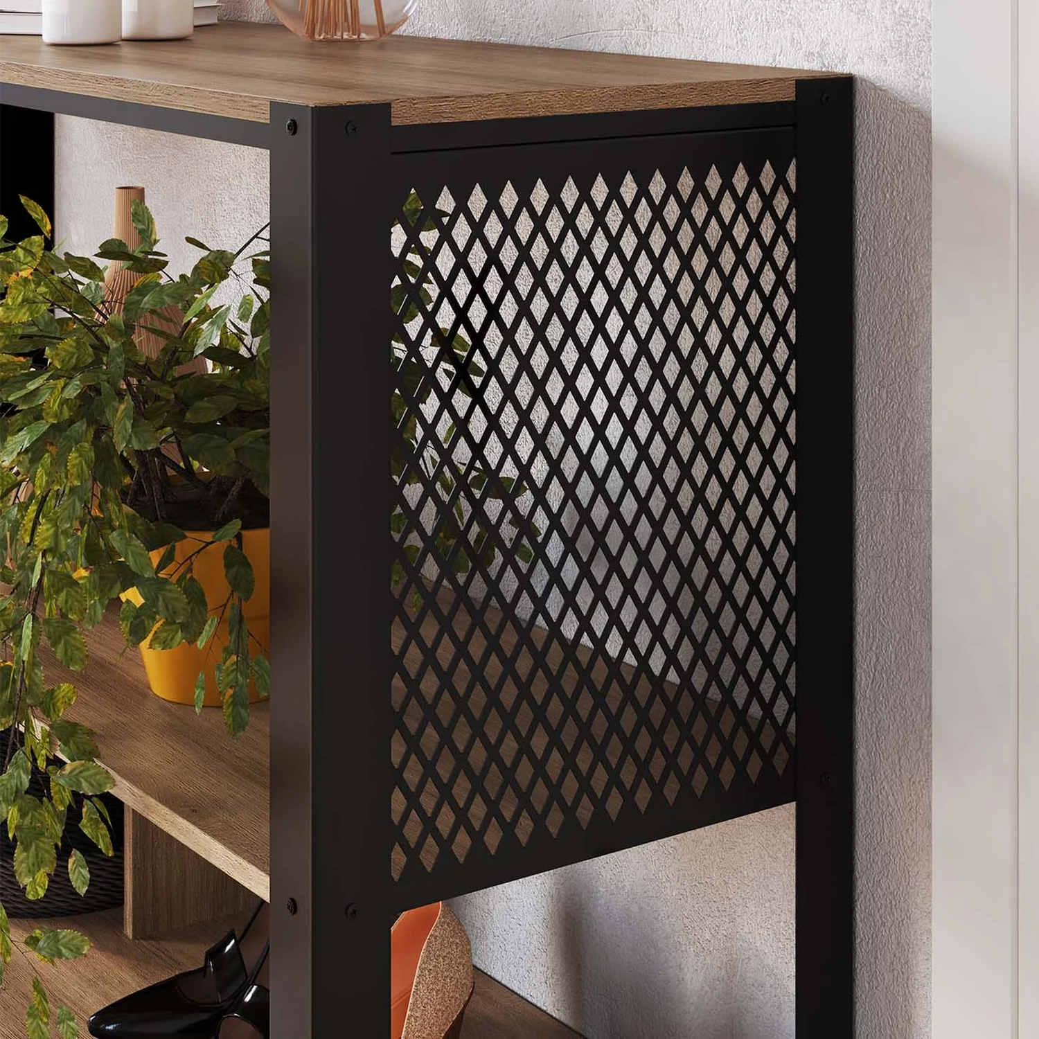 Com visual industrial e contemporâneo, este Aparador é a escolha certa, suas laterais com tela metálica e estrutura em metal trazem um ar urbano ao ambiente, valorizando Sala de Estar, halls ou espaços gourmet.