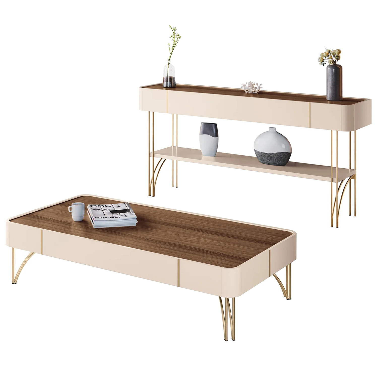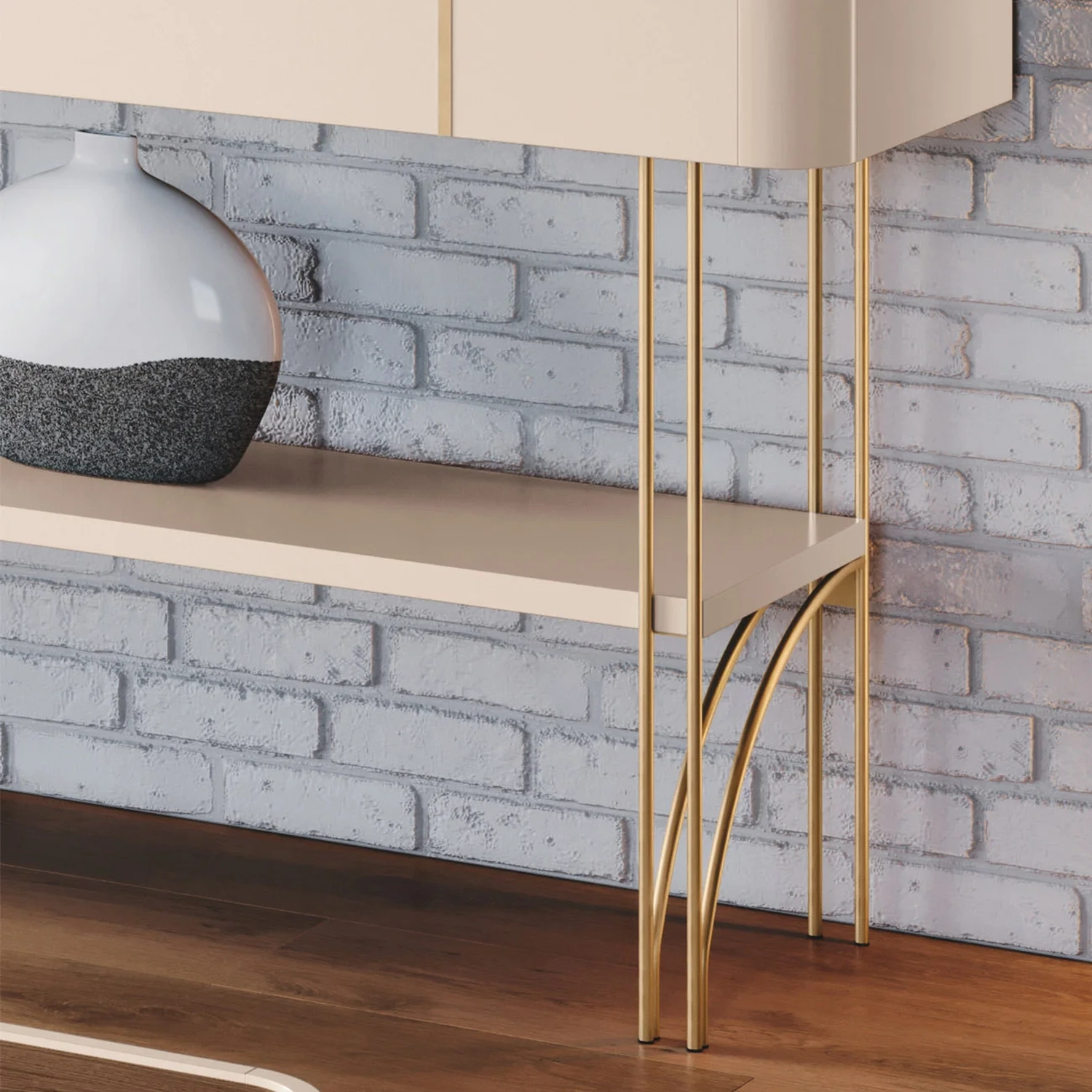 Essas peças são inspiradas no Design Contemporâneo, com formas orgânicas e cantos arredondados que trazem harmonia e leveza ao ambiente. Elas possuem laterais com filetes decorativos que dão um toque de charme e sofisticação. Os pés de aço maciço com acabamento em tom dourado conferem resistência e durabilidade, além de um brilho especial. Ambos são produzidos em MDF de 15mm, garantindo qualidade e estabilidade. Além de deixar a sua casa ainda mais linda, eles vão auxiliar no seu dia a dia para apoiar revistas, livros, controles ou decorações O Aparador de Sala conta ainda com uma prateleira inferior de 25mm, ideal para colocar objetos decorativos ou usar como divisor de ambientes. Sim! Chegou a hora de transformar a sua sala com o aparador e Mesa de Centro, você vai se surpreender com o requinte e a beleza desses móveis!