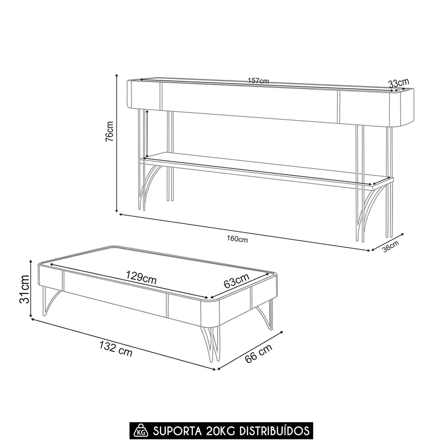 Conteúdo da Embalagem: 1 Mesa de Centro/1 Aparador.