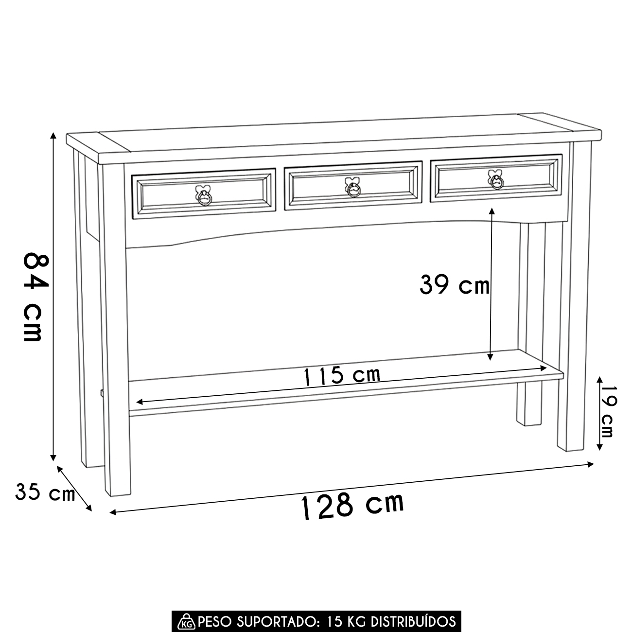 Peso Suportado: 15 Kg distribuídos.