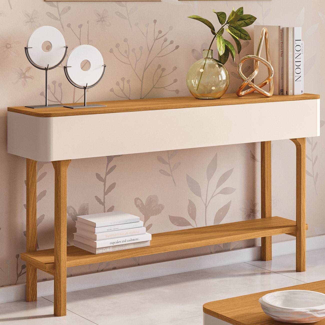 Aparador Sala de Estar 136cm Com Prateleira Janis Off/Cinamomo H01 - Mpozenato