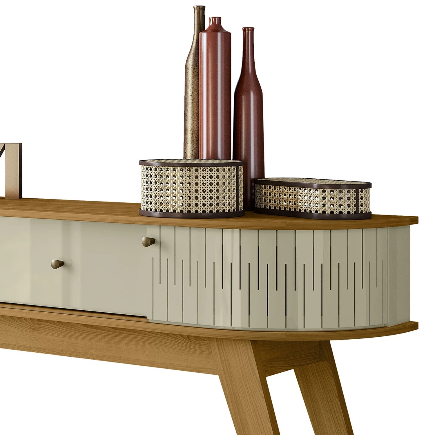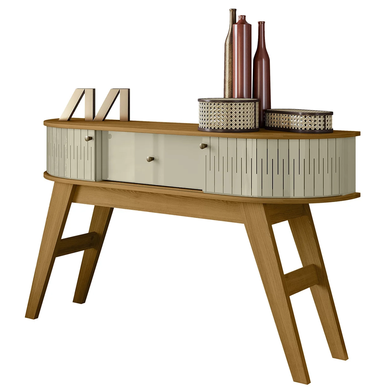 O Aparador Sala de Estar 136cm Pés Retrô Gil Z10 Cumaru/Opala, da Mpozenato, é a escolha perfeita para adicionar elegância à decoração da sua Sala de Estar.