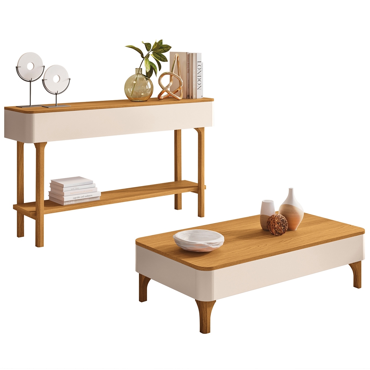 Aparador Sala de Estar Janis e Mesa de Centro Thalia Off/Cinamomo H01 - Mpozenato