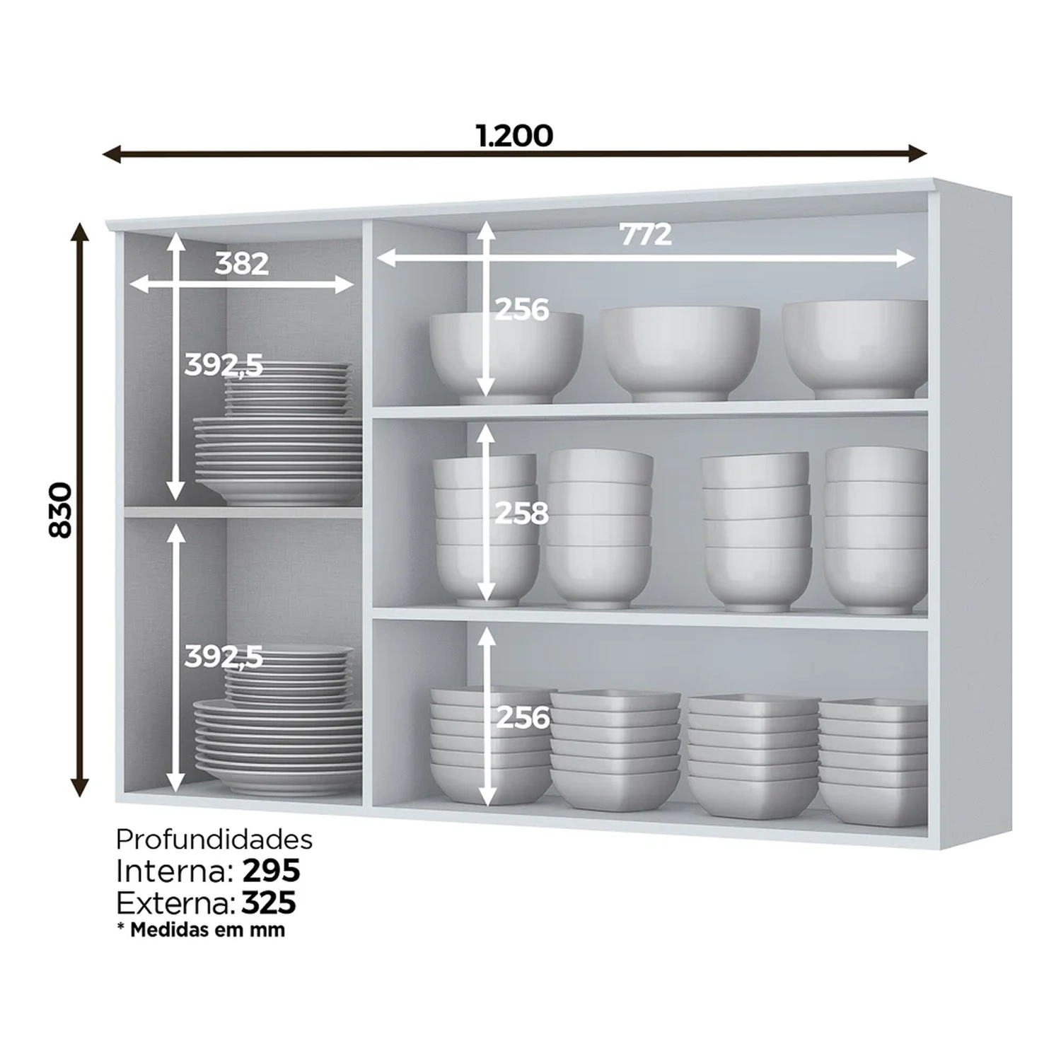 Dimensão do Produto Largura: 120 cm. Altura: 83 cm. Profundidade: 32 cm. Peso: 34 Kg.