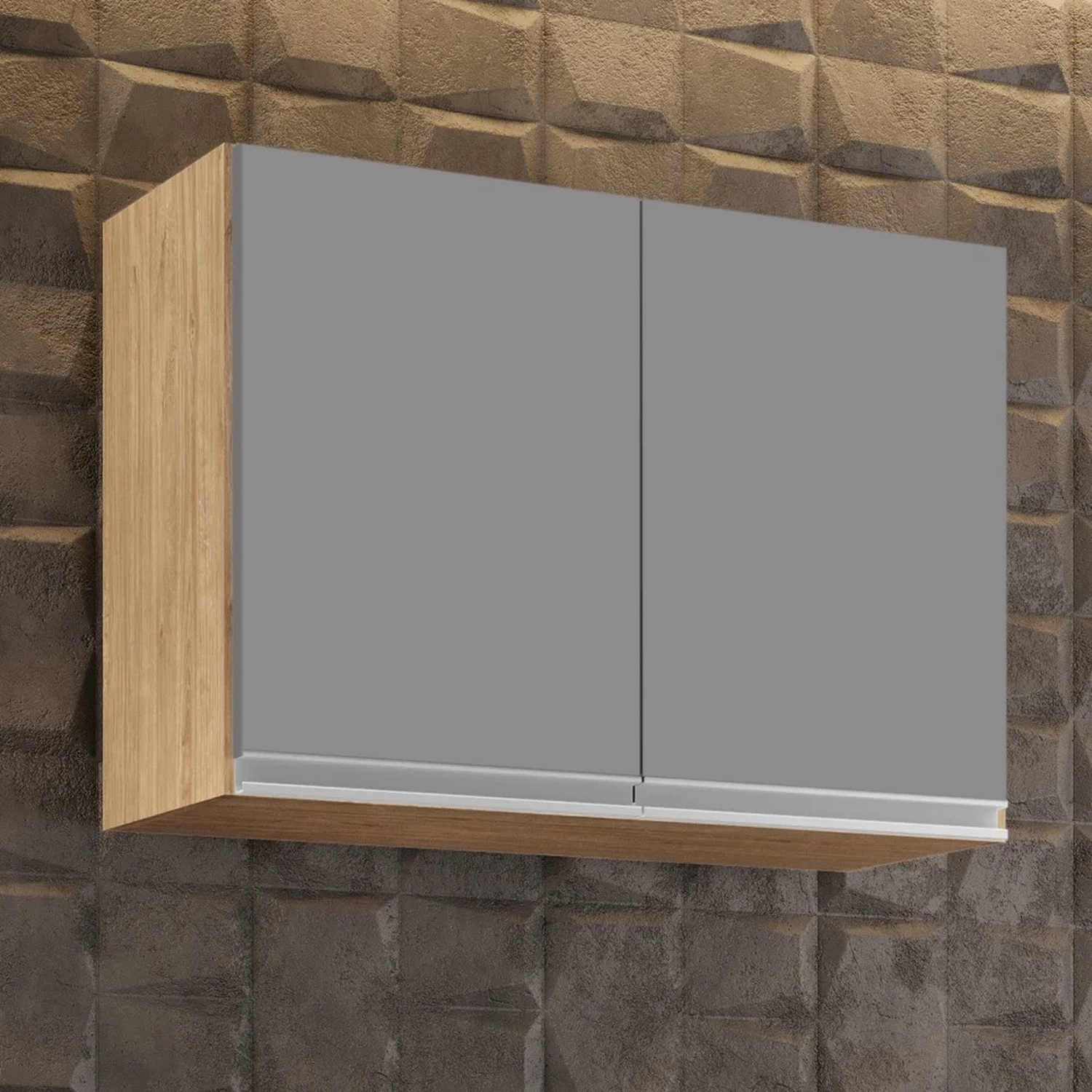 Armário Aéreo 80cm 2 Portas Califórnia Castanho/Cinza - Lumil Móveis 85277