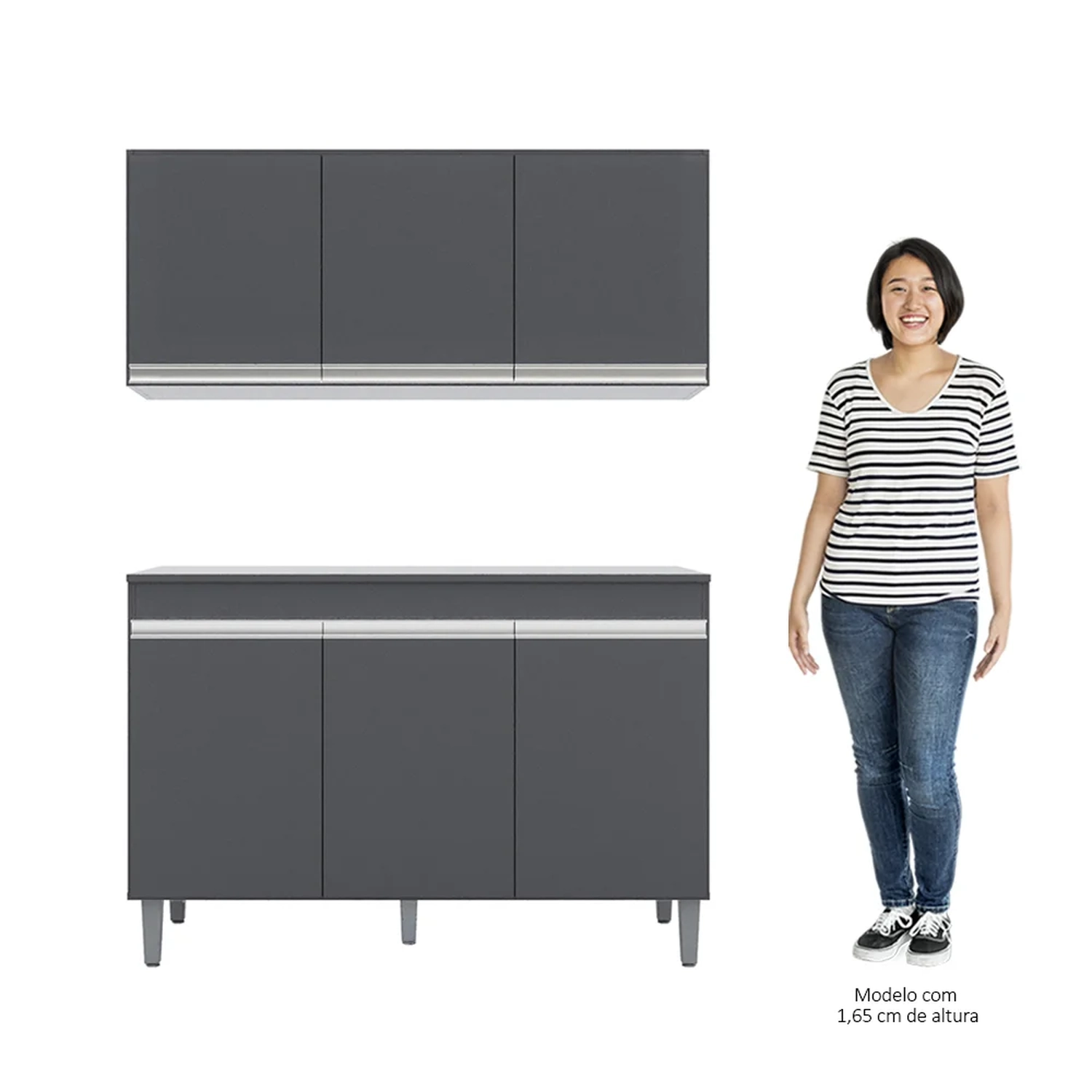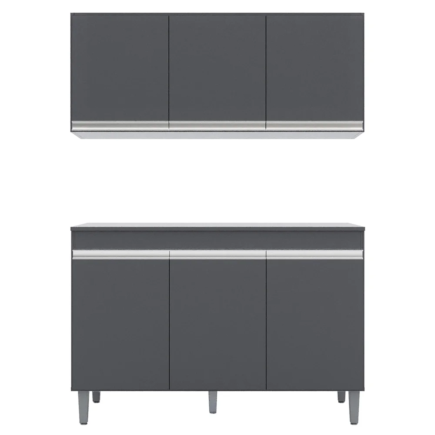 Se você está procurando um conjunto de móveis para a sua cozinha, confira o Armário Aéreo Andréia e Balcão Gabinete Para Pia Com Tampo Manu 120cm Cinza, da AJL Móveis.