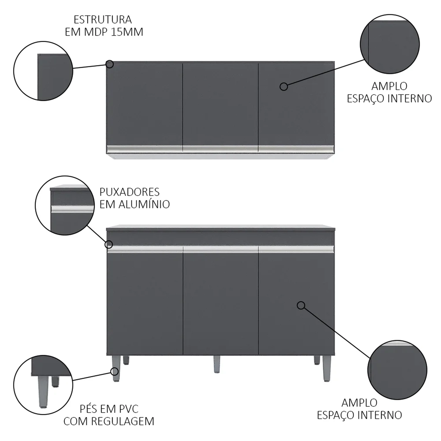 - Puxadores em alumínio.