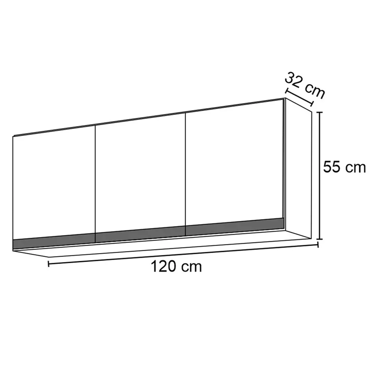 Armário Aéreo: 120 x 55 x 32 cm.