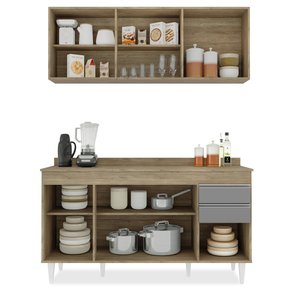 Conteúdo da Embalagem: 1 Armário Aéreo, 1 Balcão, 1 Tampo.