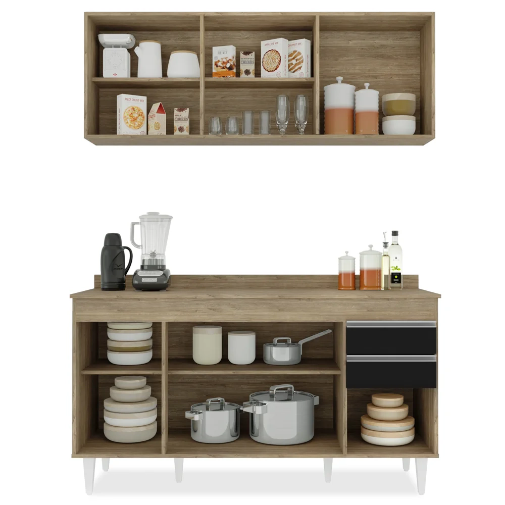 Conteúdo da Embalagem: 1 Armário Aéreo, 1 Balcão, 1 Tampo.