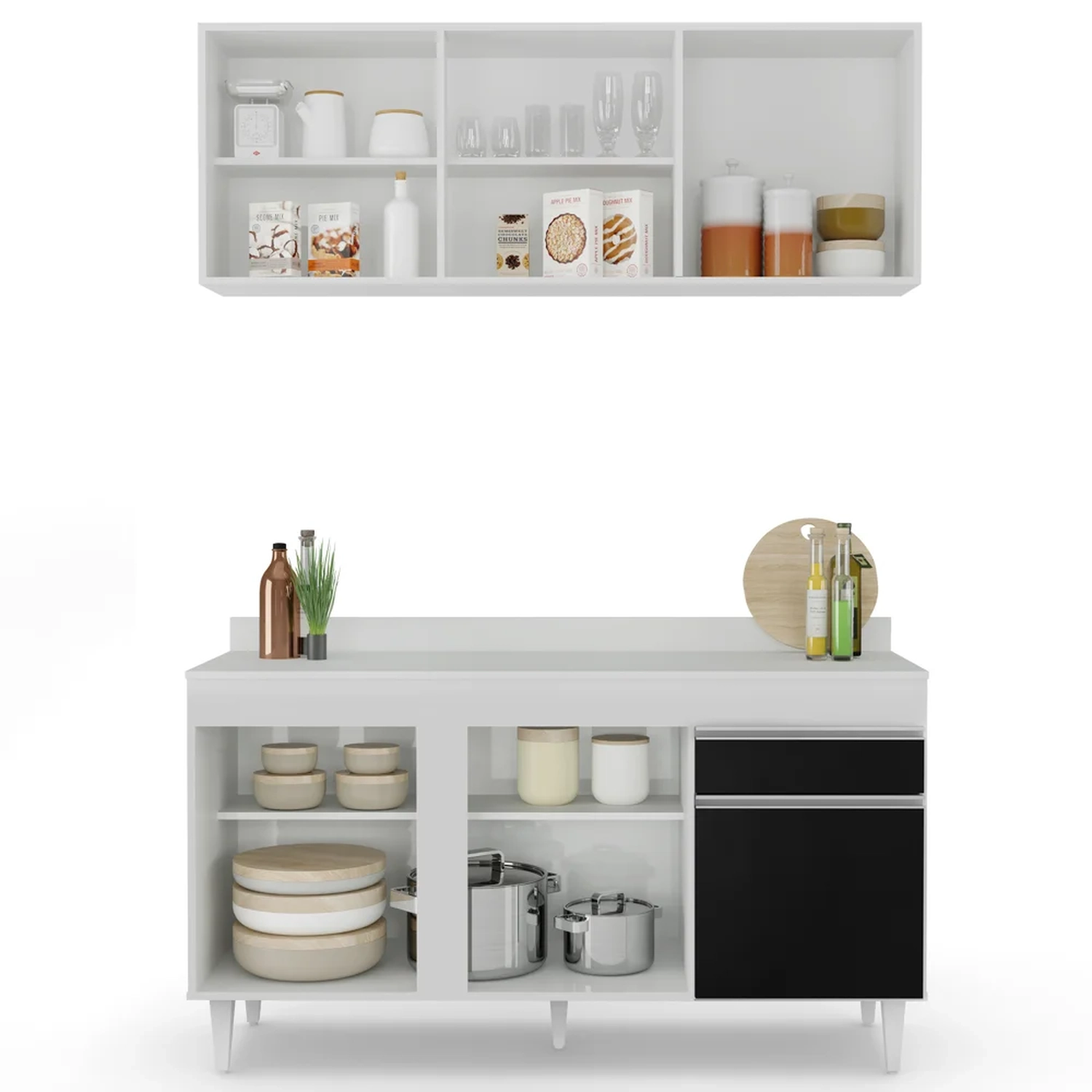 Para quem procura uma Cozinha completa, nós temos a melhor opção, conheça o Armário Aéreo Argélia e Balcão Gabinete com Tampo 150cm Dakota Branco/Preto, da Lumil!