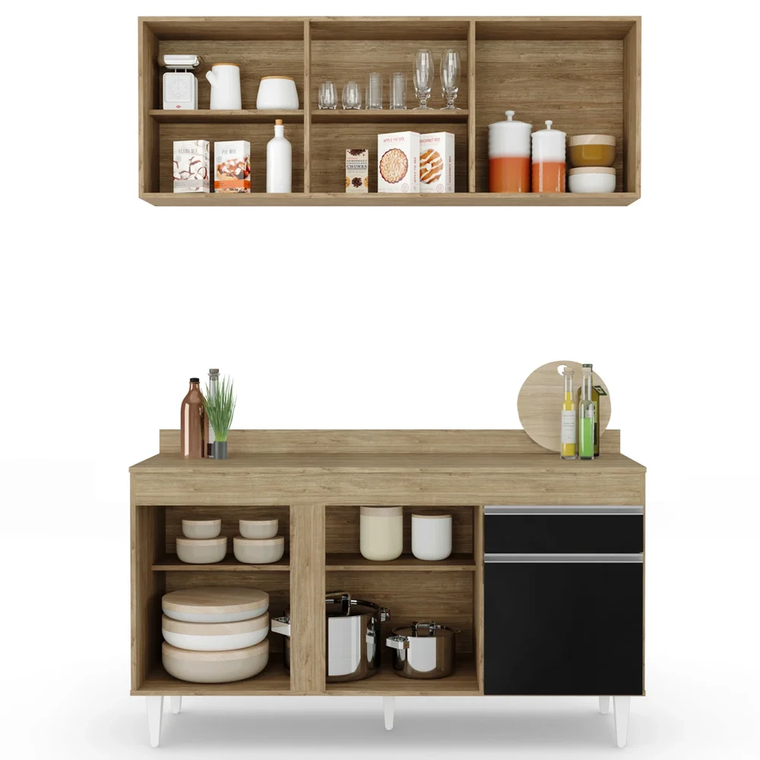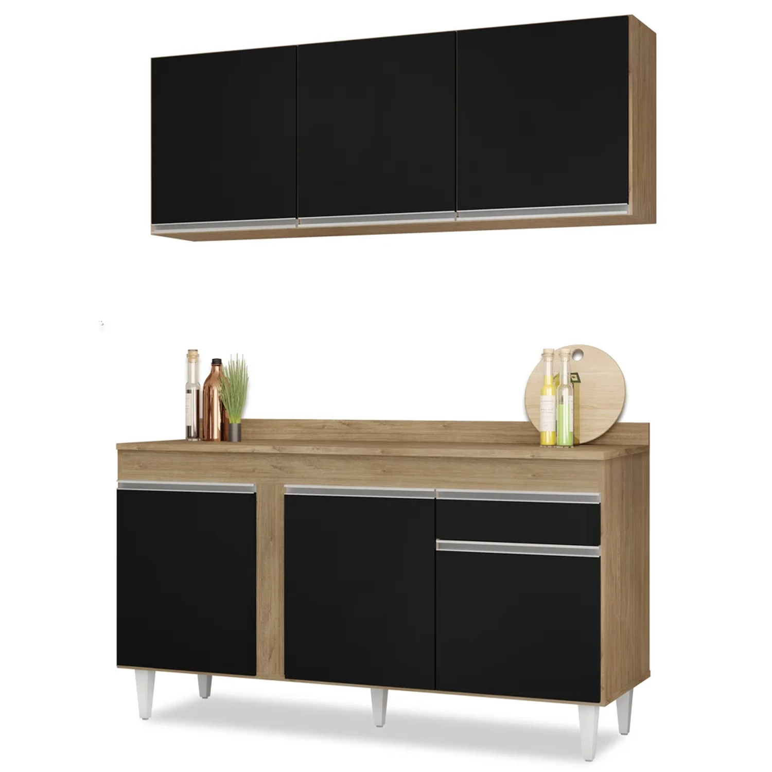 Para quem procura uma Cozinha completa, nós temos a melhor opção, conheça o Armário Aéreo Argélia e Balcão Gabinete com Tampo 150cm Dakota Castanho/Preto, da Lumil!