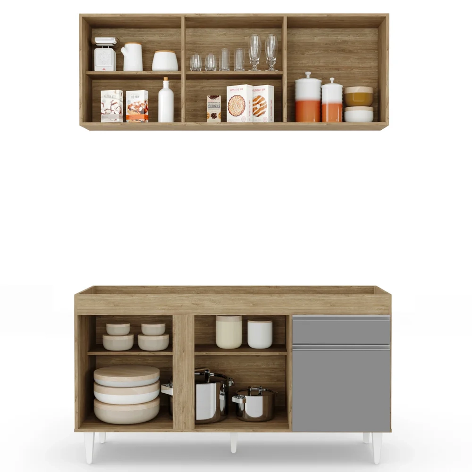 Conteúdo da Embalagem: 1 Armário Aéreo, 1 Balcão.