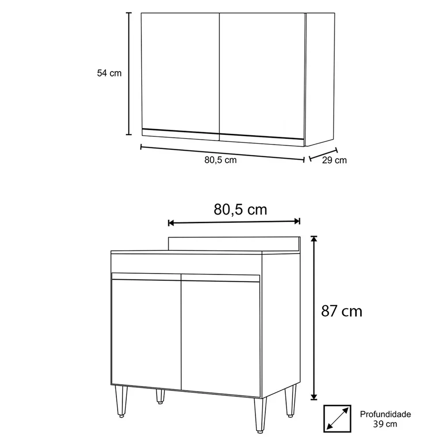 Armário Aéreo: 80,5 x 54 x 29 cm.