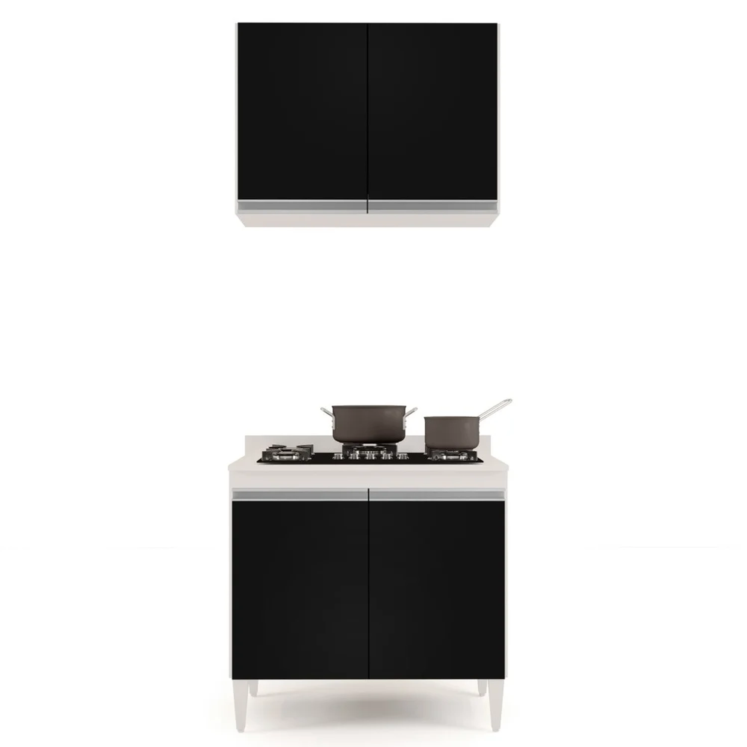 O Balcão para Cooktop Flórida da Lumil Móveis é um item de muita praticidade e eficiência para o dia a dia e pode auxiliar nas tarefas rotineiras. Ele possui 2 portas de puxador em perfil alumínio e prateleira interna proporcionando amplo espaço guardar seus apetrechos de culinária. Já o modelo Armário Aéreo Califórnia Branco/Preto possui 2 portas de puxadores em perfil alumínio e ainda conta com 1 prateleira interna oferecendo maior organização. Tudo com estrutura em MDP com acabamento em pintura BP fazendo deles, móveis imperdíveis para sua casa!!