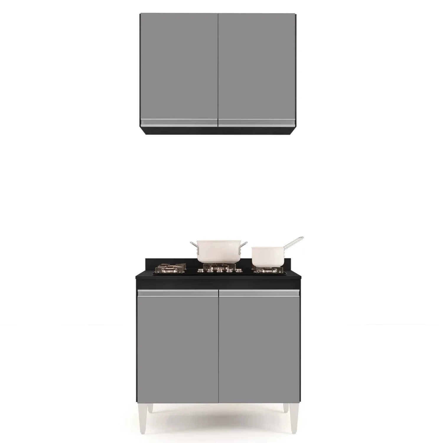 O Balcão para Cooktop Flórida da Lumil Móveis é um item de muita praticidade e eficiência para o dia a dia e pode auxiliar nas tarefas rotineiras. Ele possui 2 portas de puxador em perfil alumínio e prateleira interna proporcionando amplo espaço guardar seus apetrechos de culinária. Já o modelo Armário Aéreo Califórnia Preto/Cinza possui 2 portas de puxadores em perfil alumínio e ainda conta com 1 prateleira interna oferecendo maior organização. Tudo com estrutura em MDP com acabamento em pintura BP fazendo deles, móveis imperdíveis para sua casa!!
