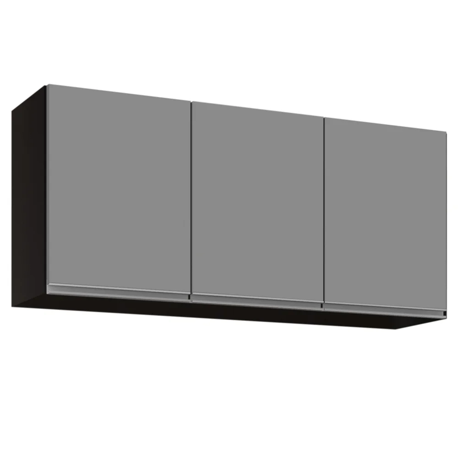 Armário de Cozinha Aéreo 120cm 3 Portas Virgínia Preto/Cinza - Lumil