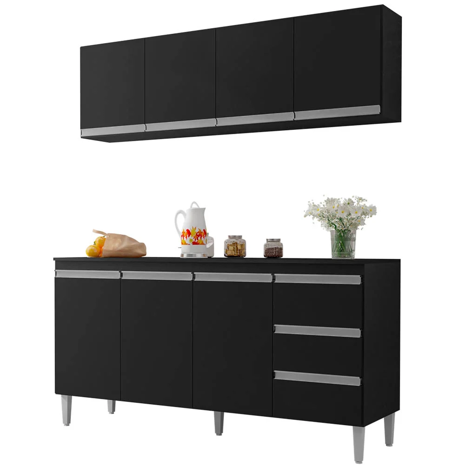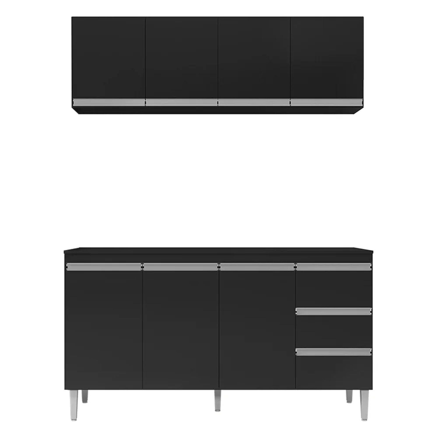 Hora de renovar sua Cozinha e temos a opção perfeita para você, confira o Armário Aéreo e Balcão Gabinete com Tampo 160cm Andréia Preto, da AJL Móveis!