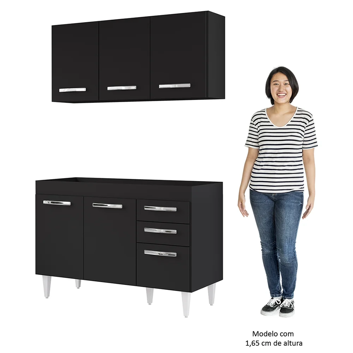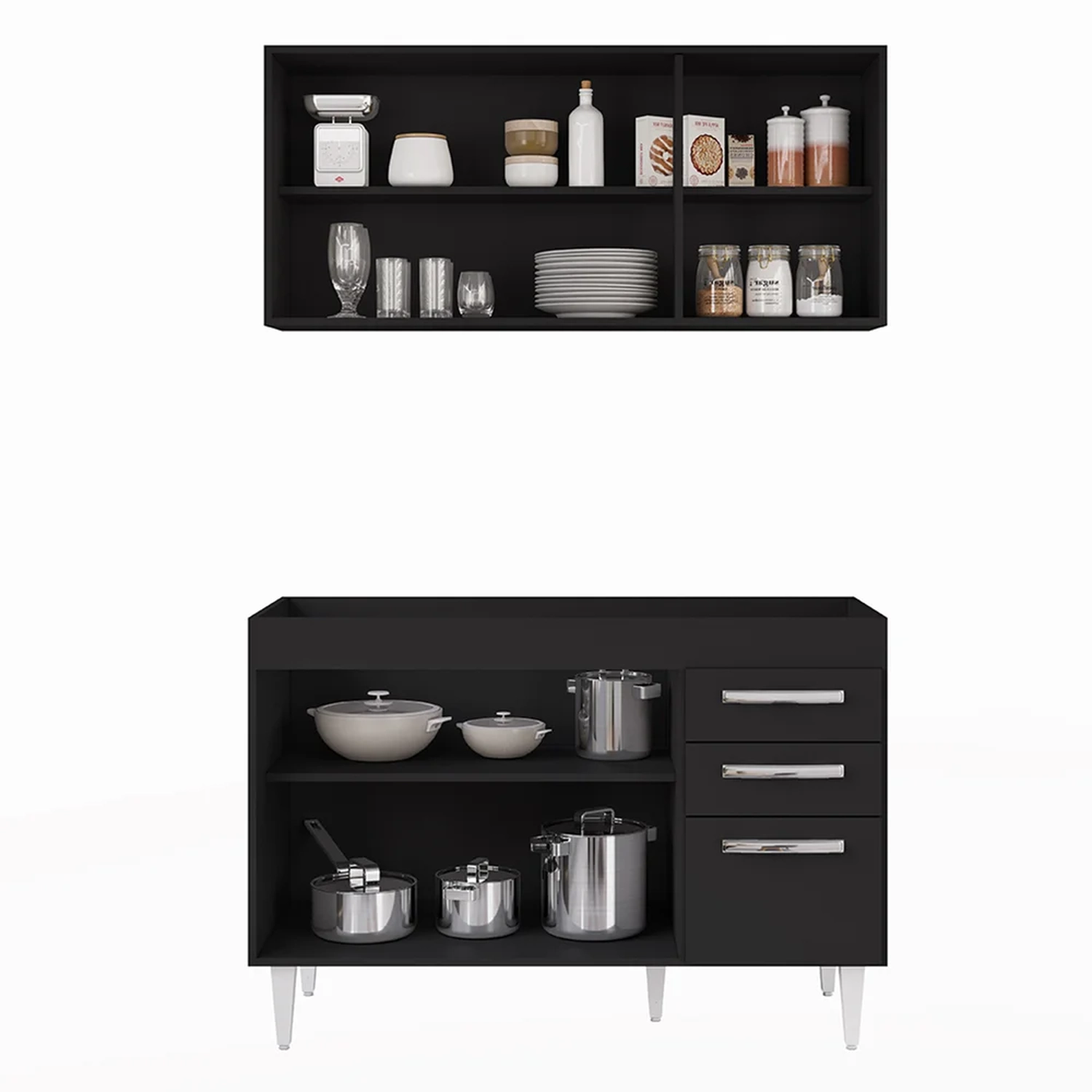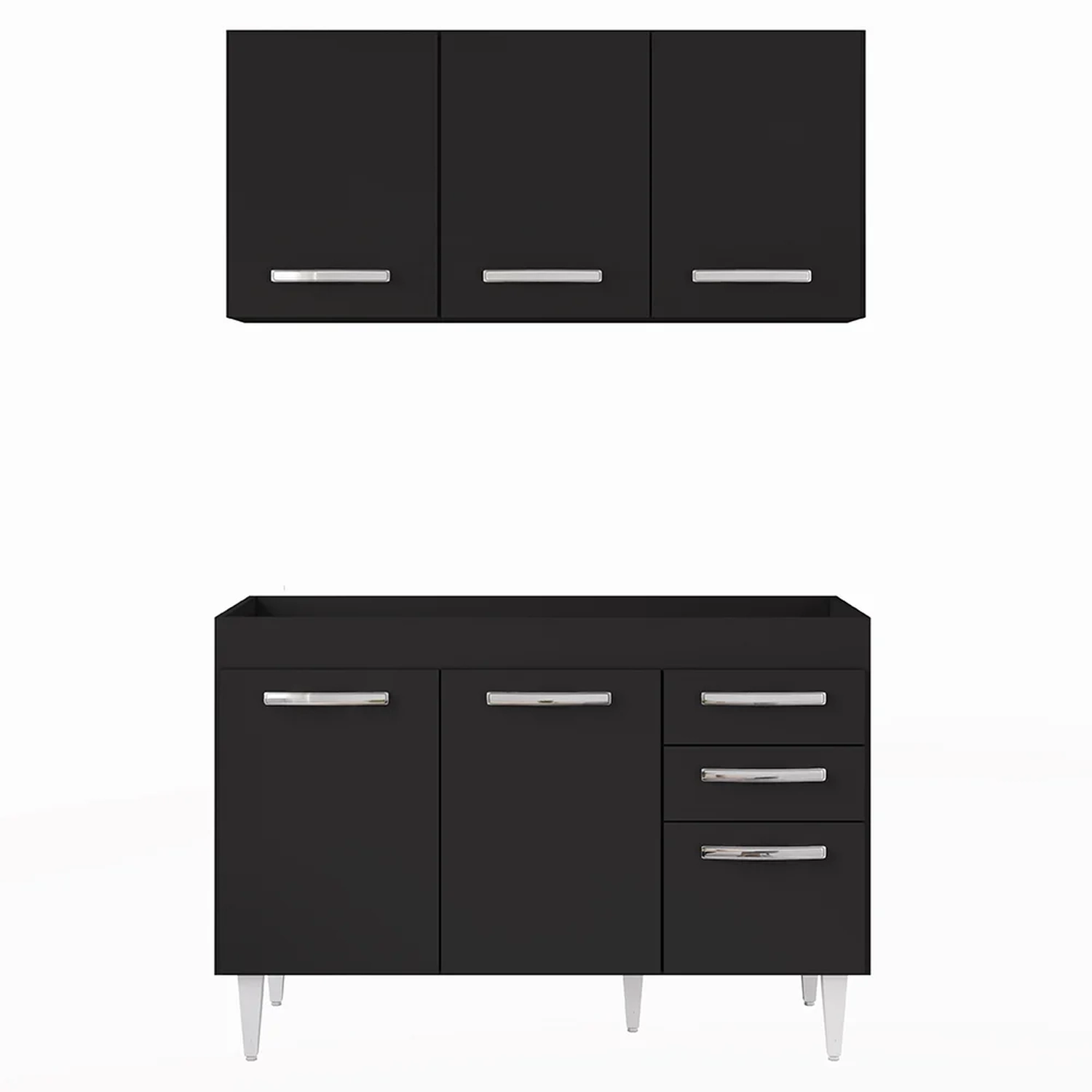 É preciso estar atento na hora de escolher o móvel que vai compor o ambiente, afinal com cozinhas cada vez menores ele deve ser compacto e funcional, assim como o Armário Aéreo Honduras e Balcão Gabinete sem Tampo 120cm Suécia Preto, da Lumil.
