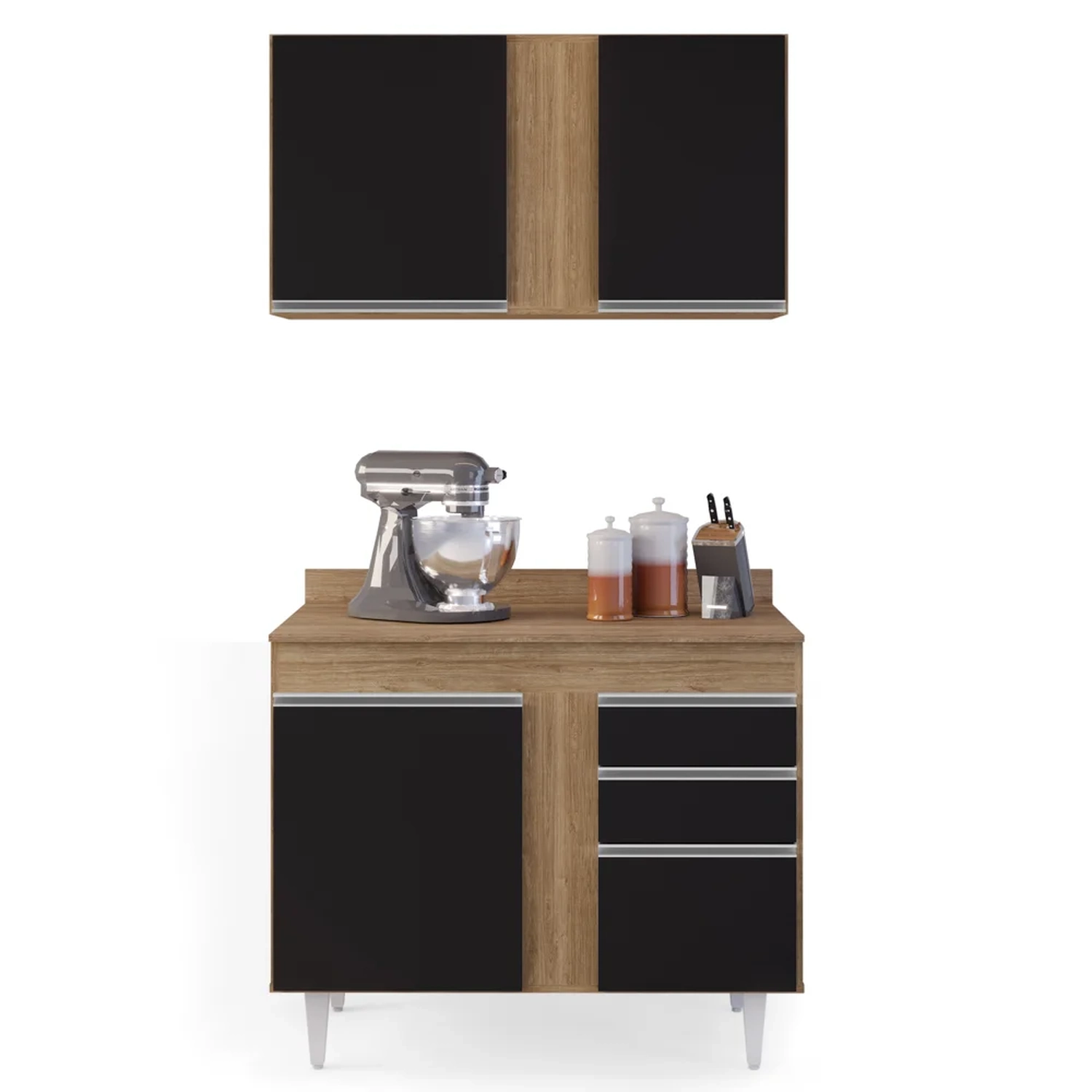 Em busca da peça ideal para sua cozinha? Então confira agora mesmo o Armário Aéreo Indiana e Balcão Gabinete 100cm Luziania Castanho/Preto que a Lumil desenvolveu!