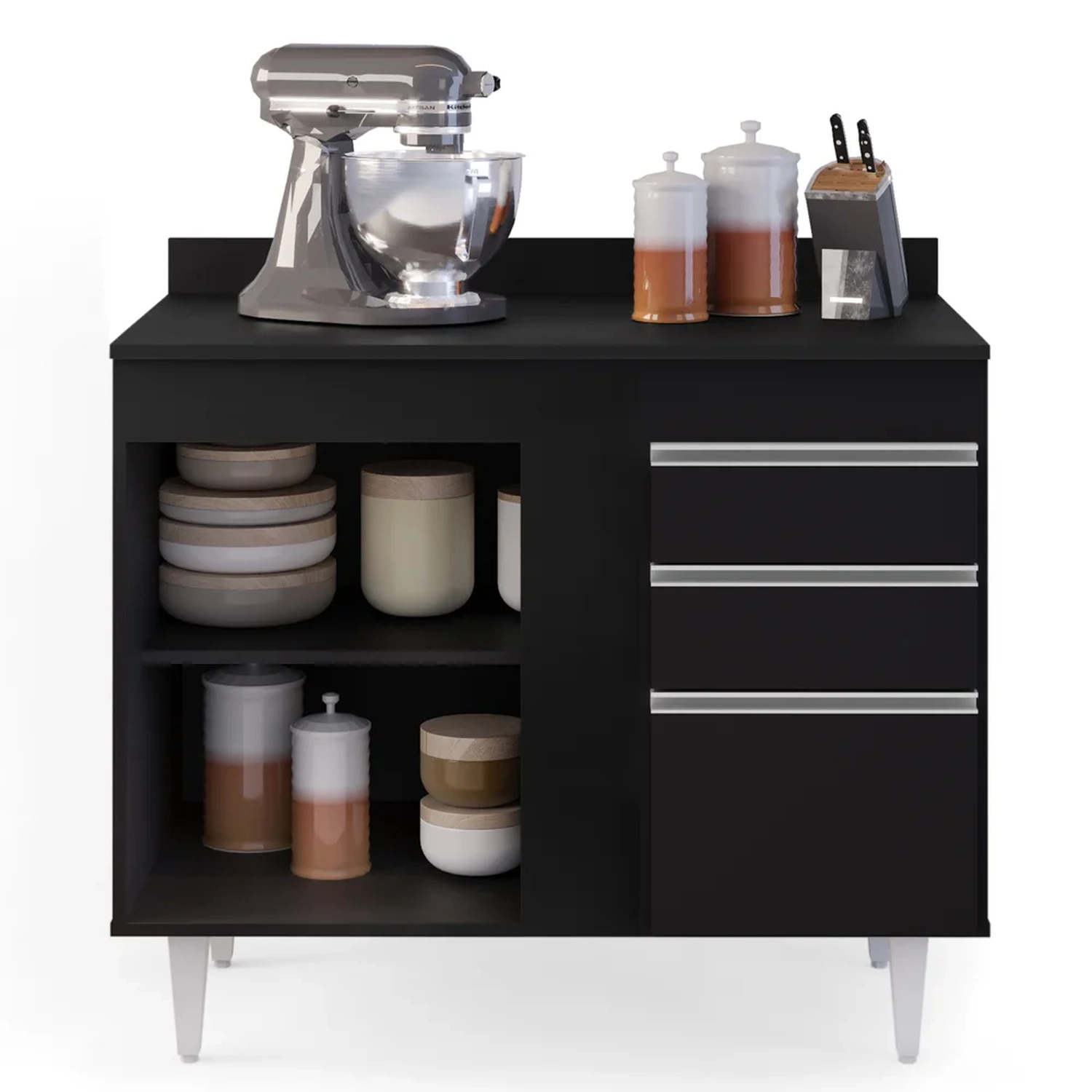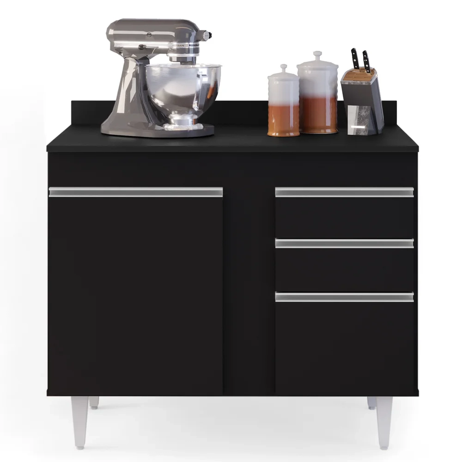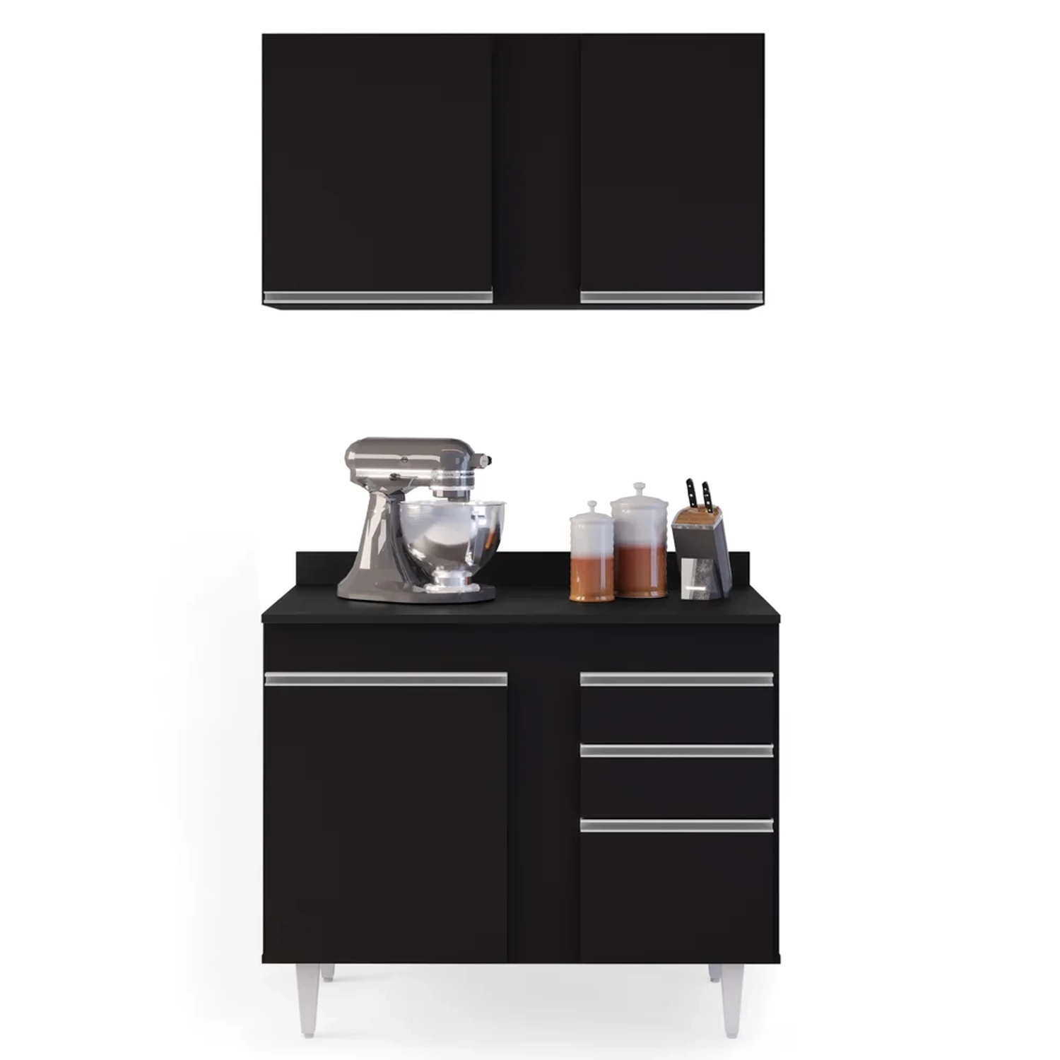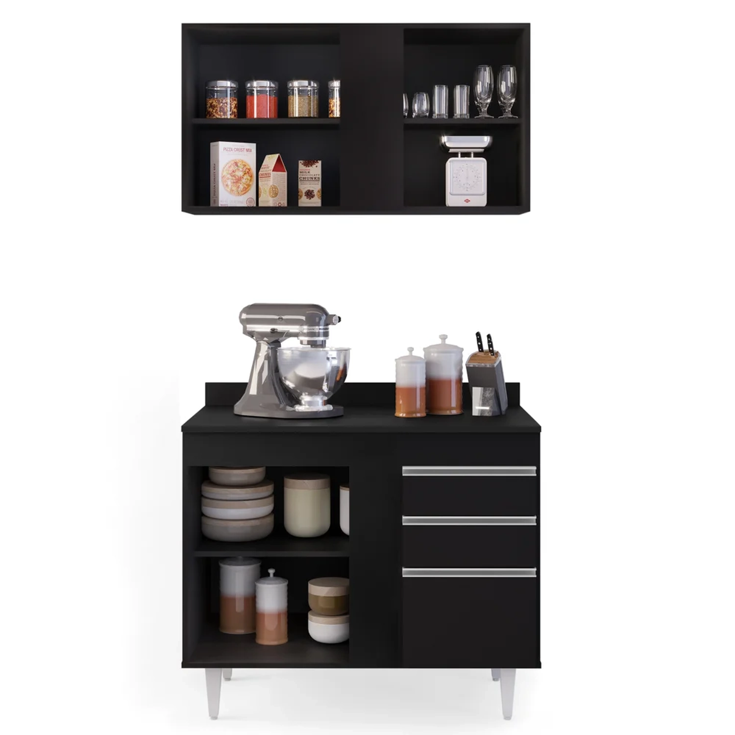 Em busca da peça ideal para sua cozinha? Então confira agora mesmo o Armário Aéreo Indiana e Balcão Gabinete 100cm Luziania Preto que a Lumil desenvolveu!