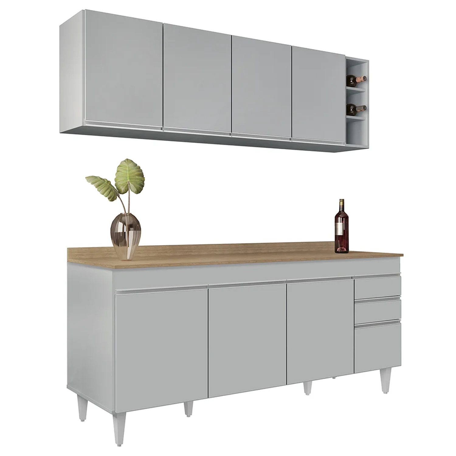 Em um cômodo que exige funcionalidade e beleza o Conjunto Armário de Cozinha Nevada e Balcão 180cm com Tampo Dallas Cinza Claro Lumil é a escolha perfeita para a sua Cozinha! Vem conhecer os detalhes!