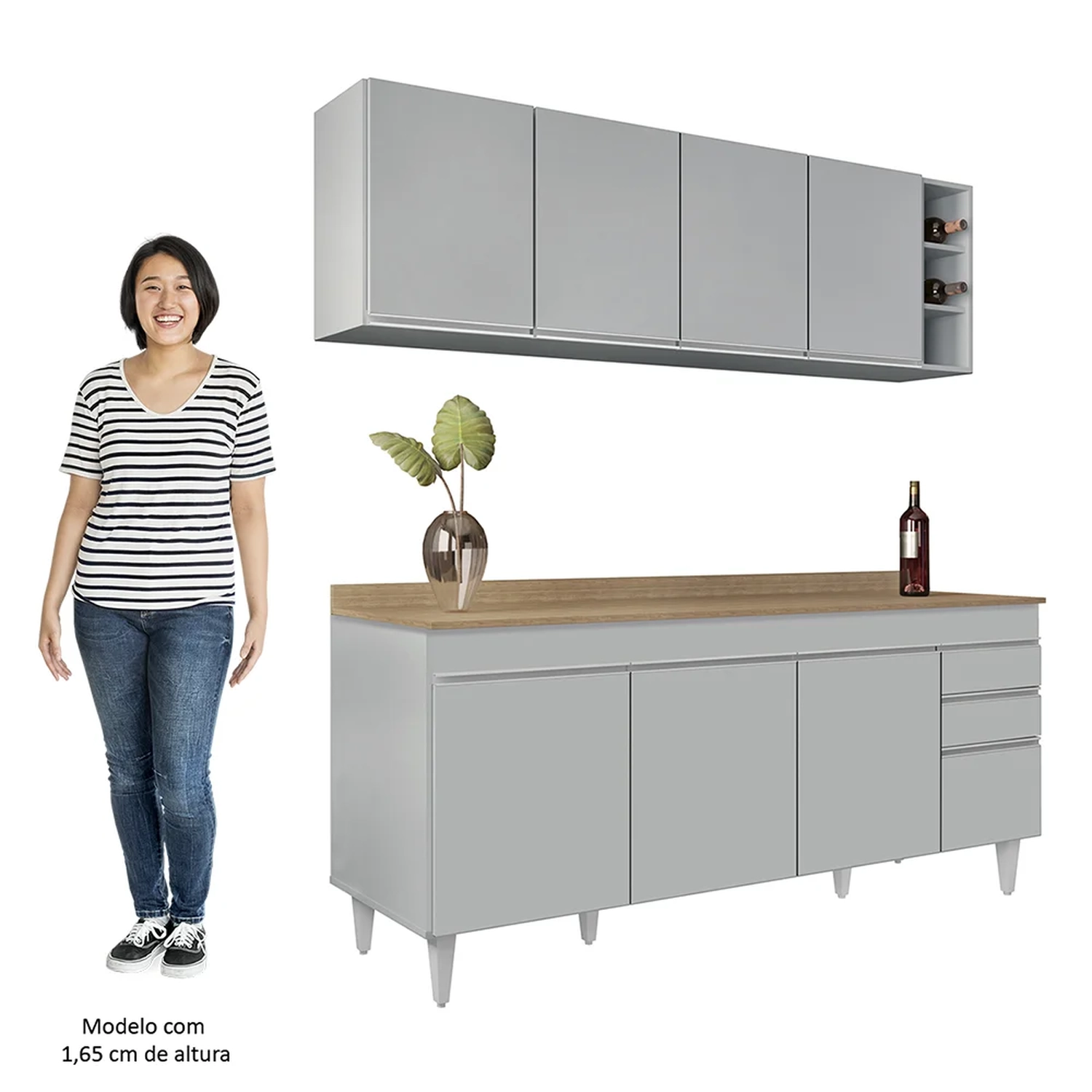 Conteúdo da Embalagem: 1 Balcão, 1 Tampo, 1 Armário Aéreo, 1 Nicho.
