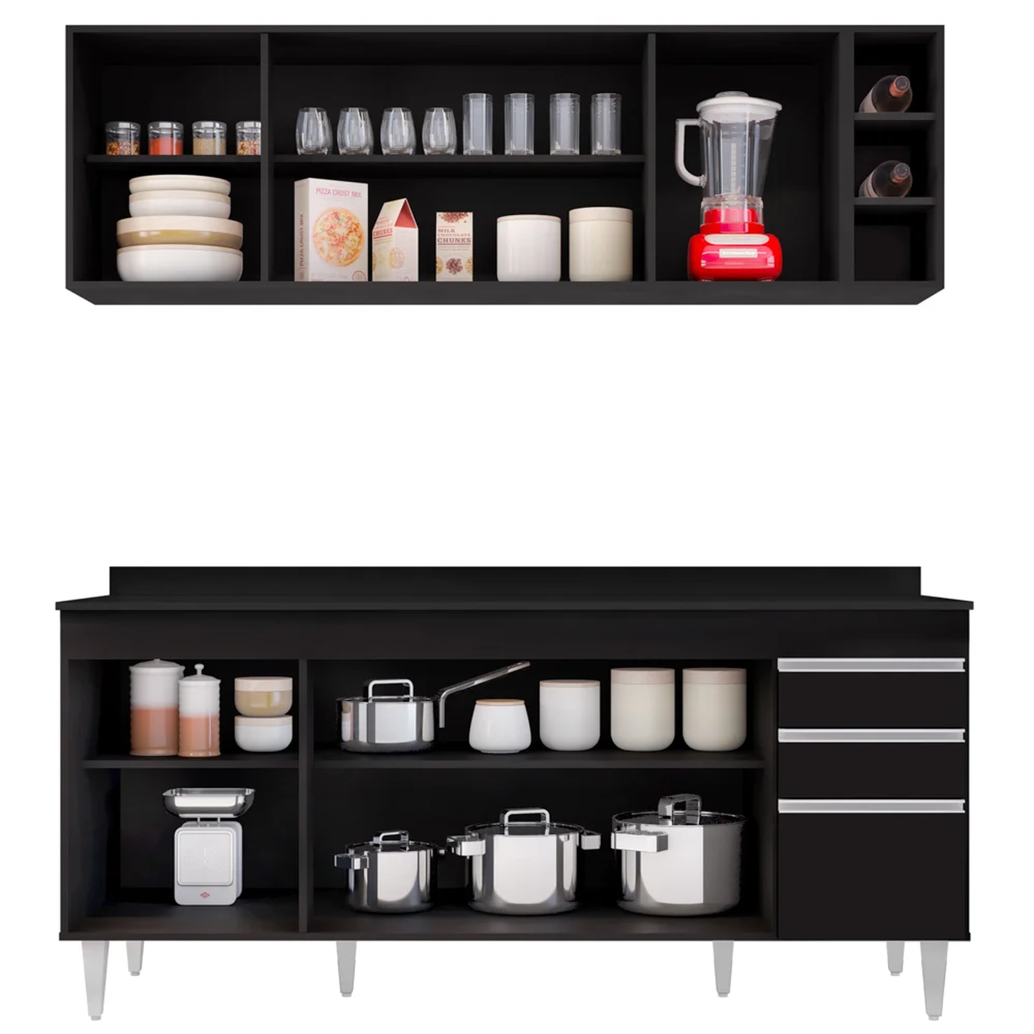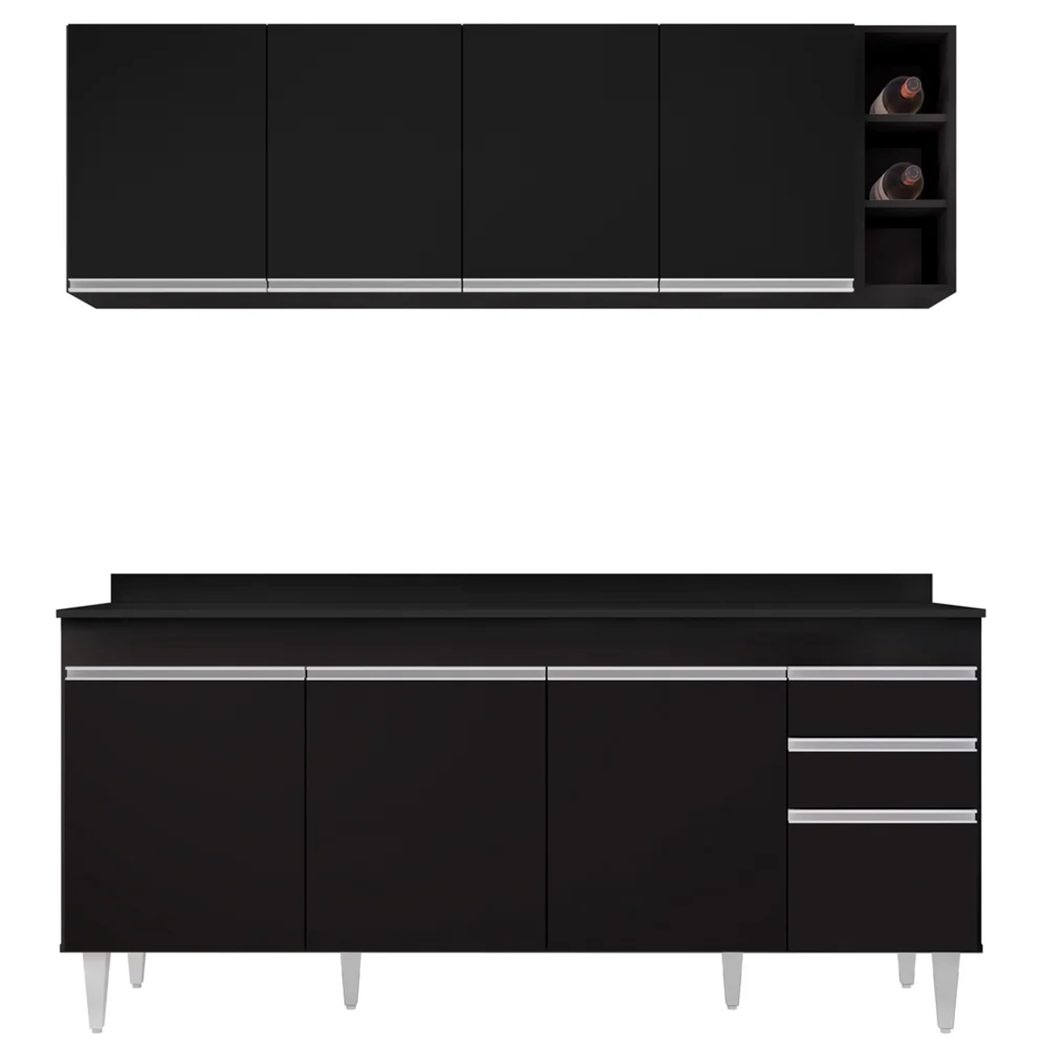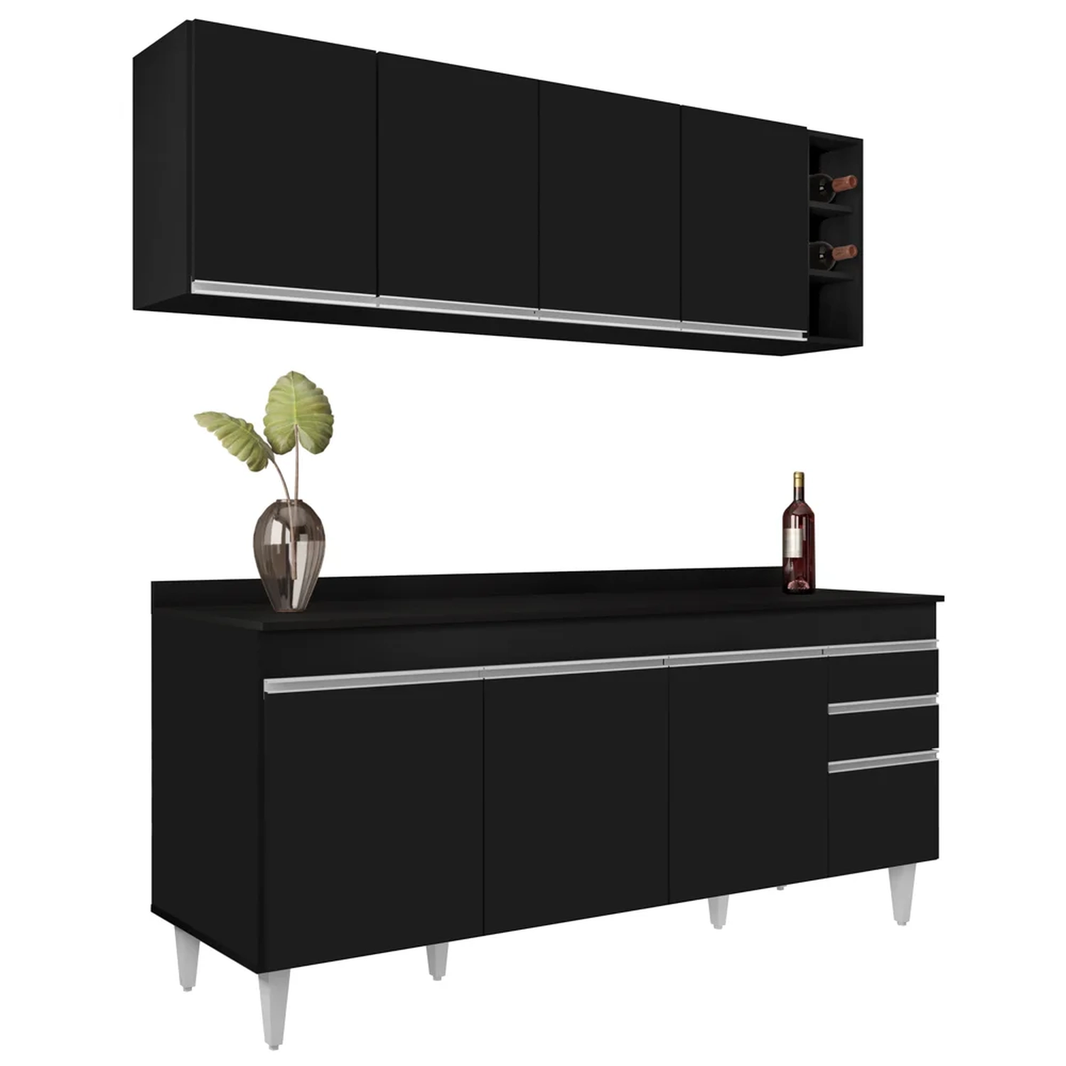 Em um cômodo que exige funcionalidade e beleza o Conjunto Armário Aéreo Nevada e Balcão 180cm com Tampo Dallas Preto da Lumil é a escolha perfeita para a sua Cozinha! Vem conhecer os detalhes!