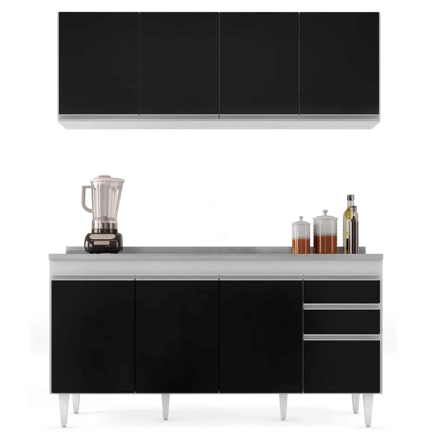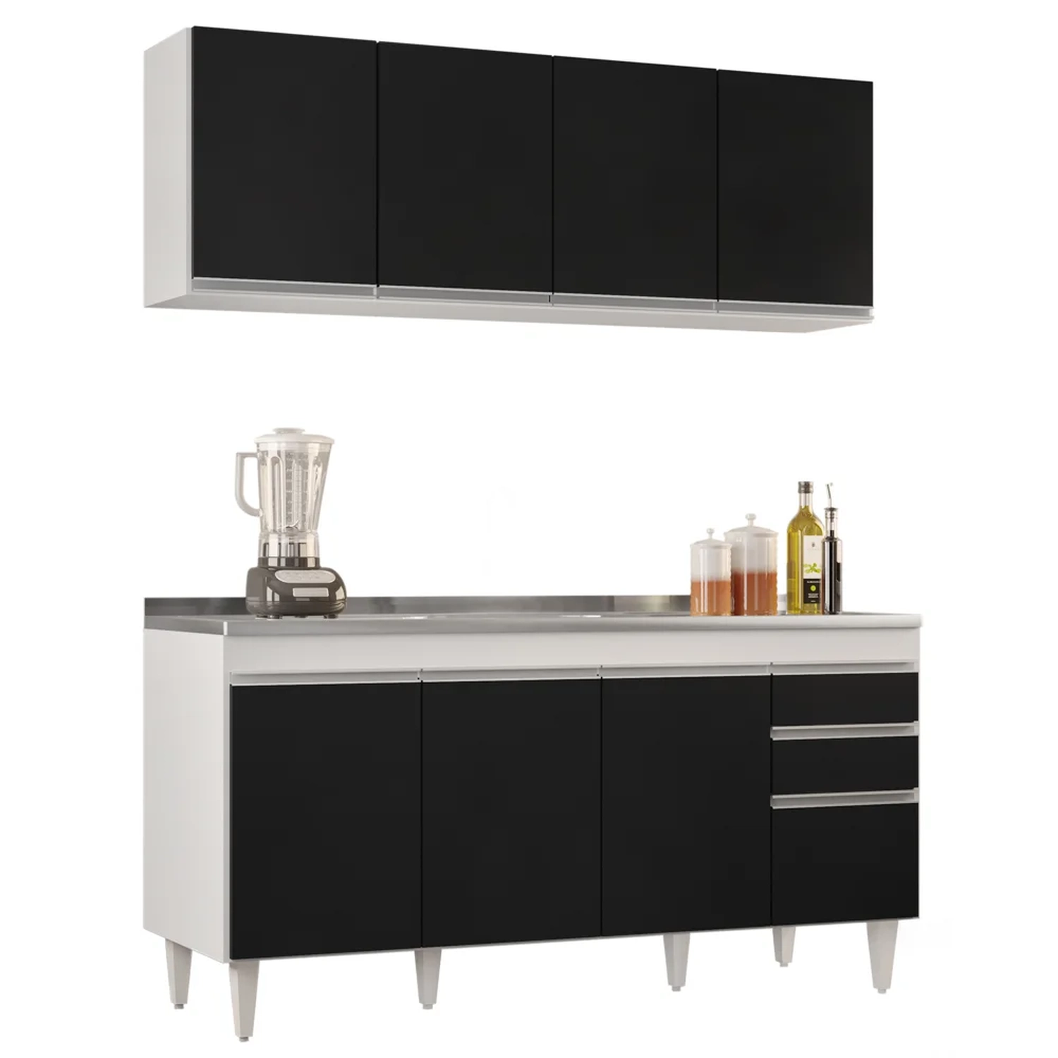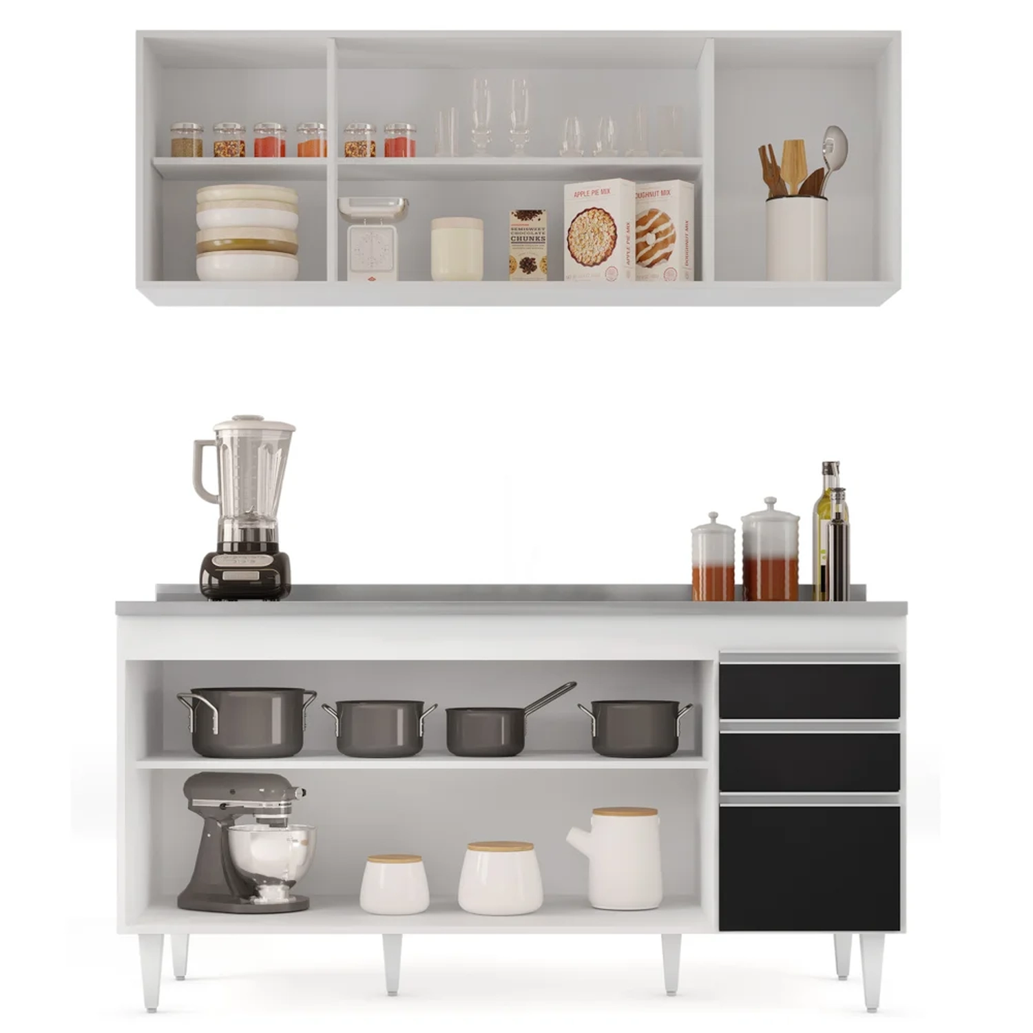 Pensando em renovar os móveis da casa? Conheça o Armário Aéreo Nevada e Balcão Gabinete com Pia 160cm Arkansas Branco/Preto, da Lumil e encante-se!