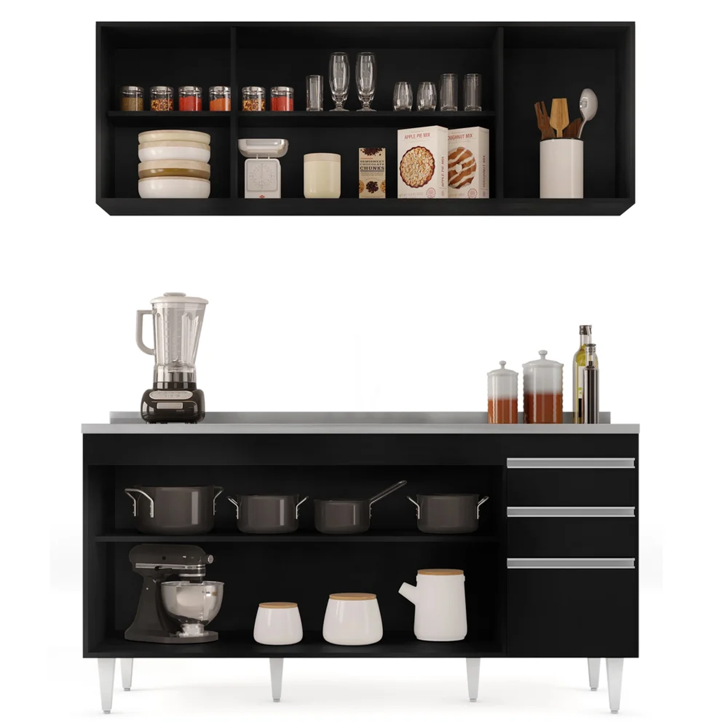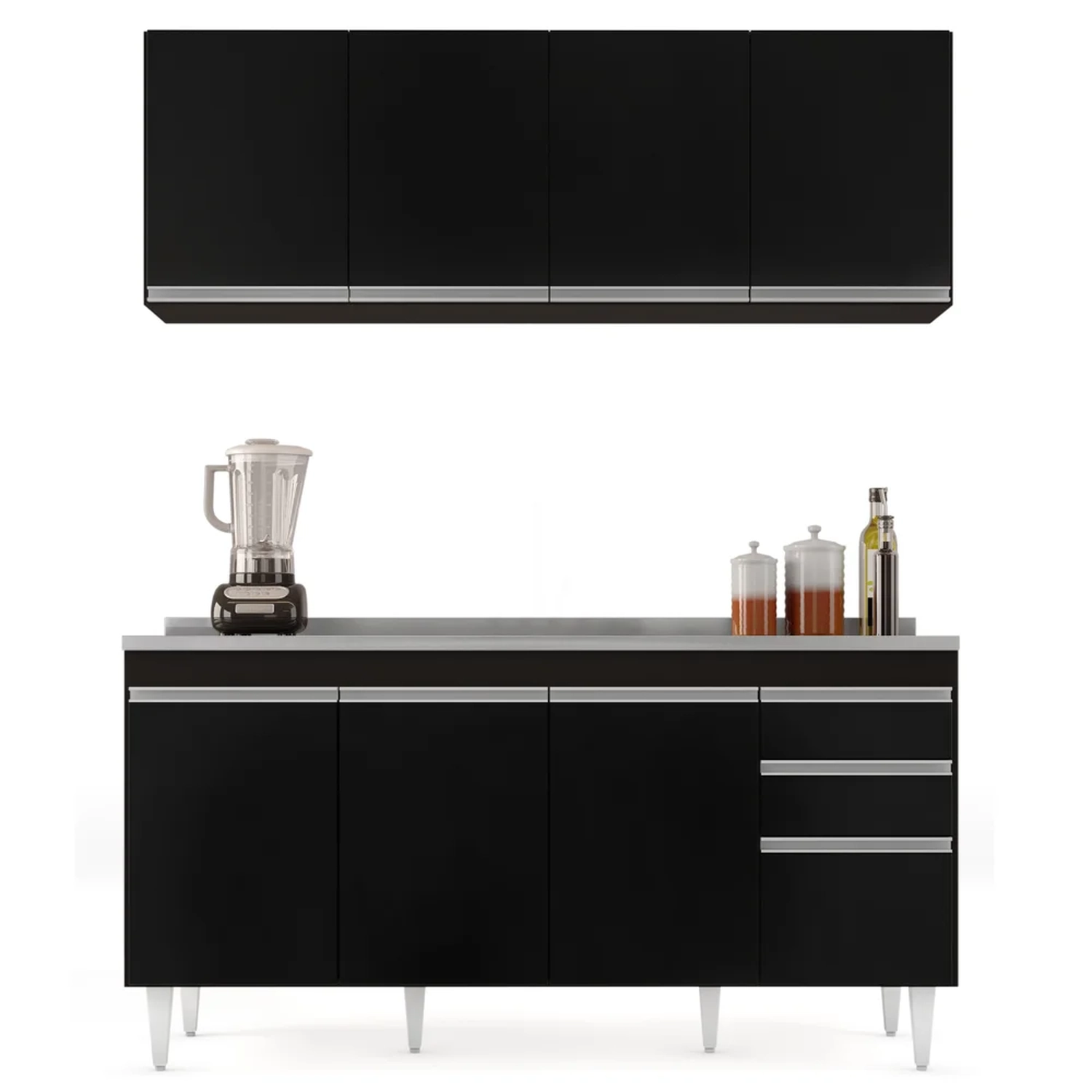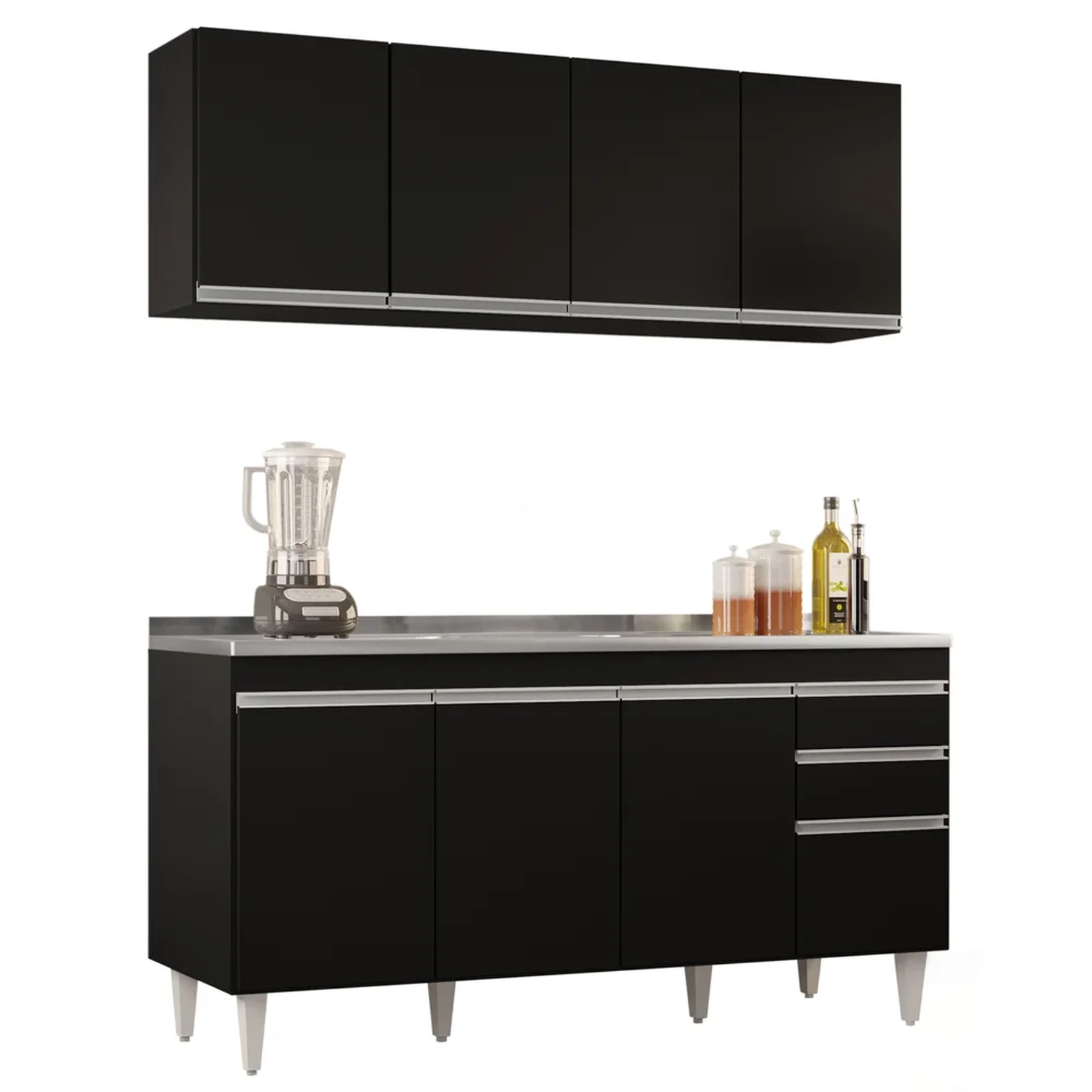 Pensando em renovar os móveis da casa? Conheça o Armário Aéreo Nevada e Balcão Gabinete com Pia 160cm Arkansas Preto, da Lumil e encante-se!