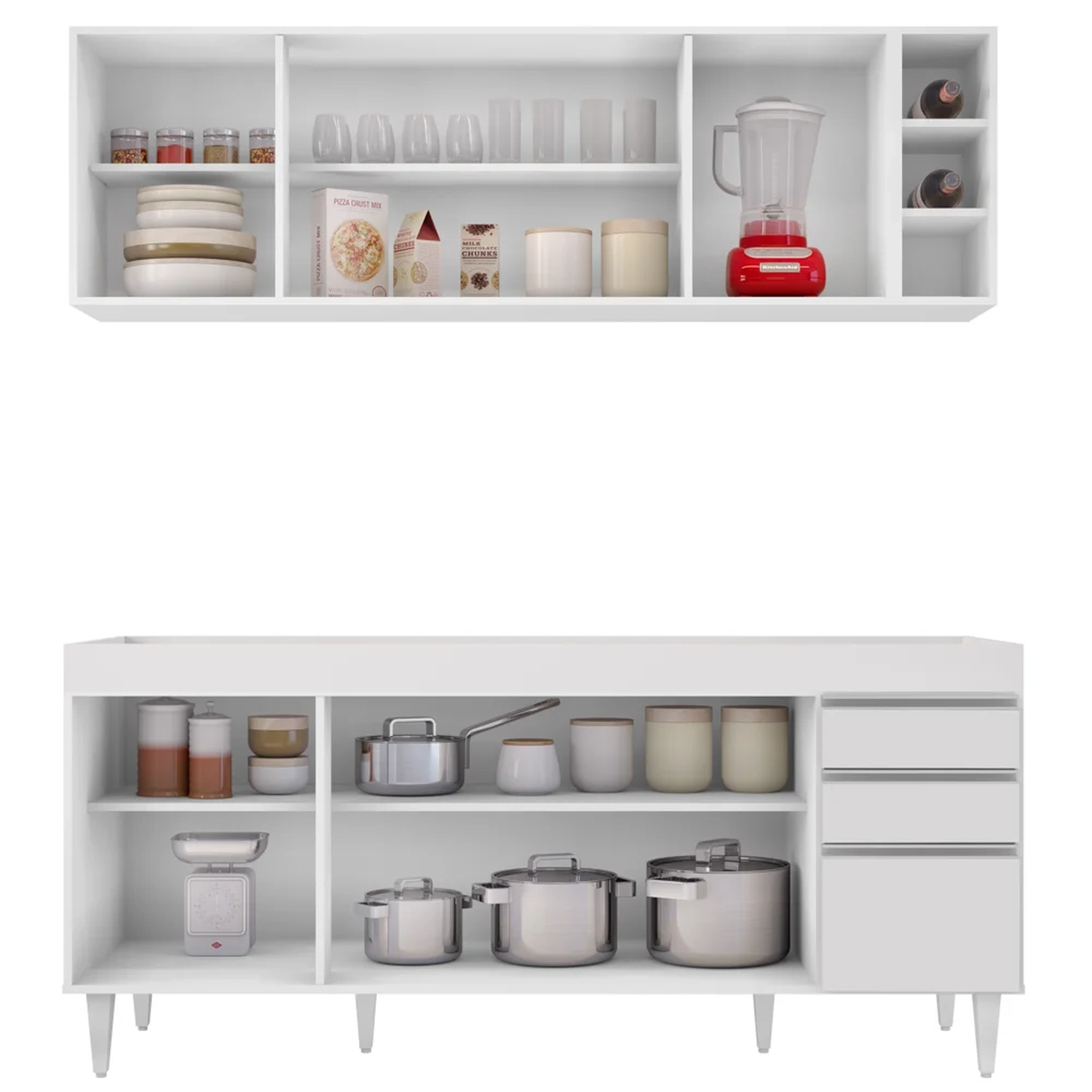Em um cômodo que exige funcionalidade e beleza o Conjunto Armário Aéreo Nevada e Balcão para Pia 180cm Dallas Branco da Lumil é a escolha perfeita para a sua Cozinha! Vem conhecer os detalhes!