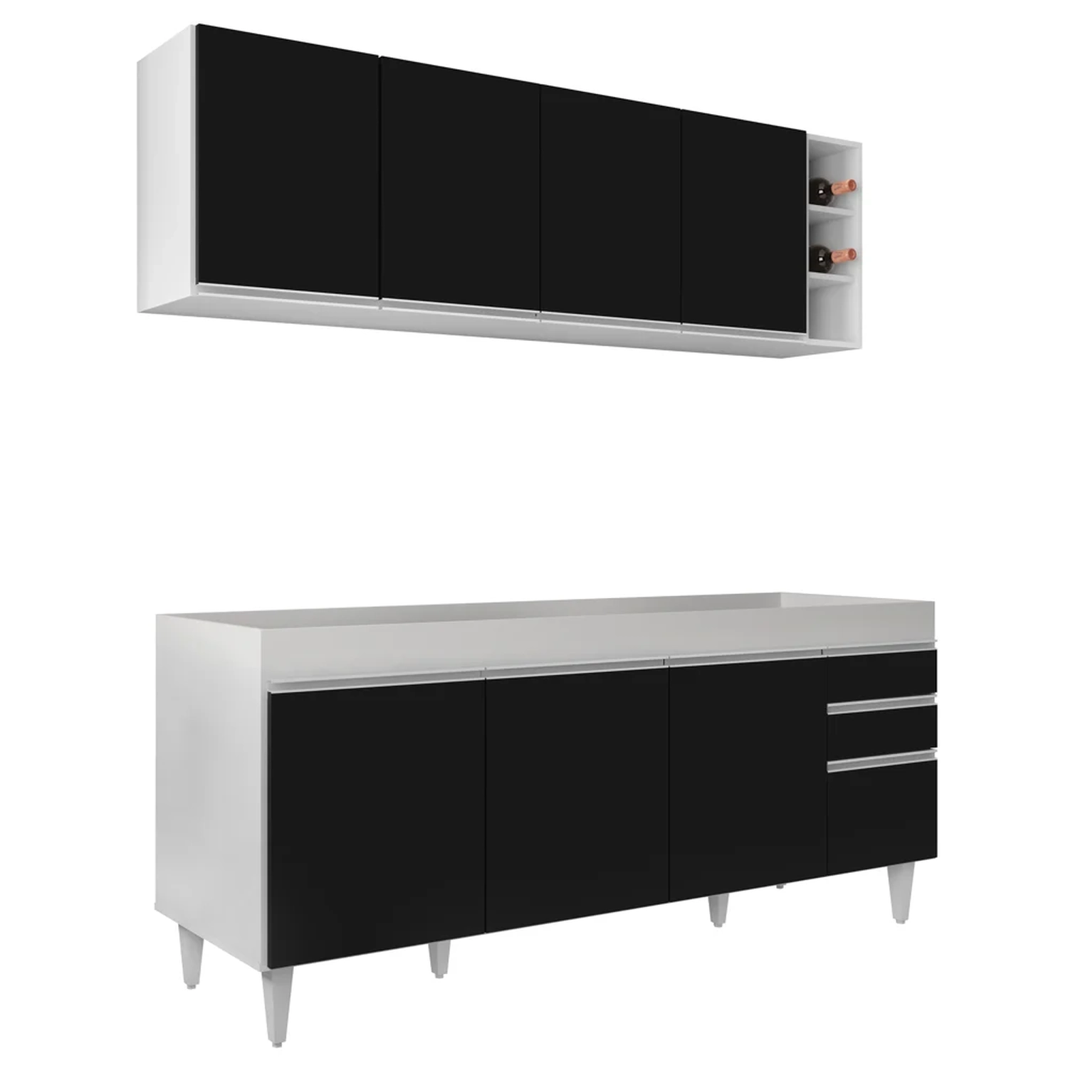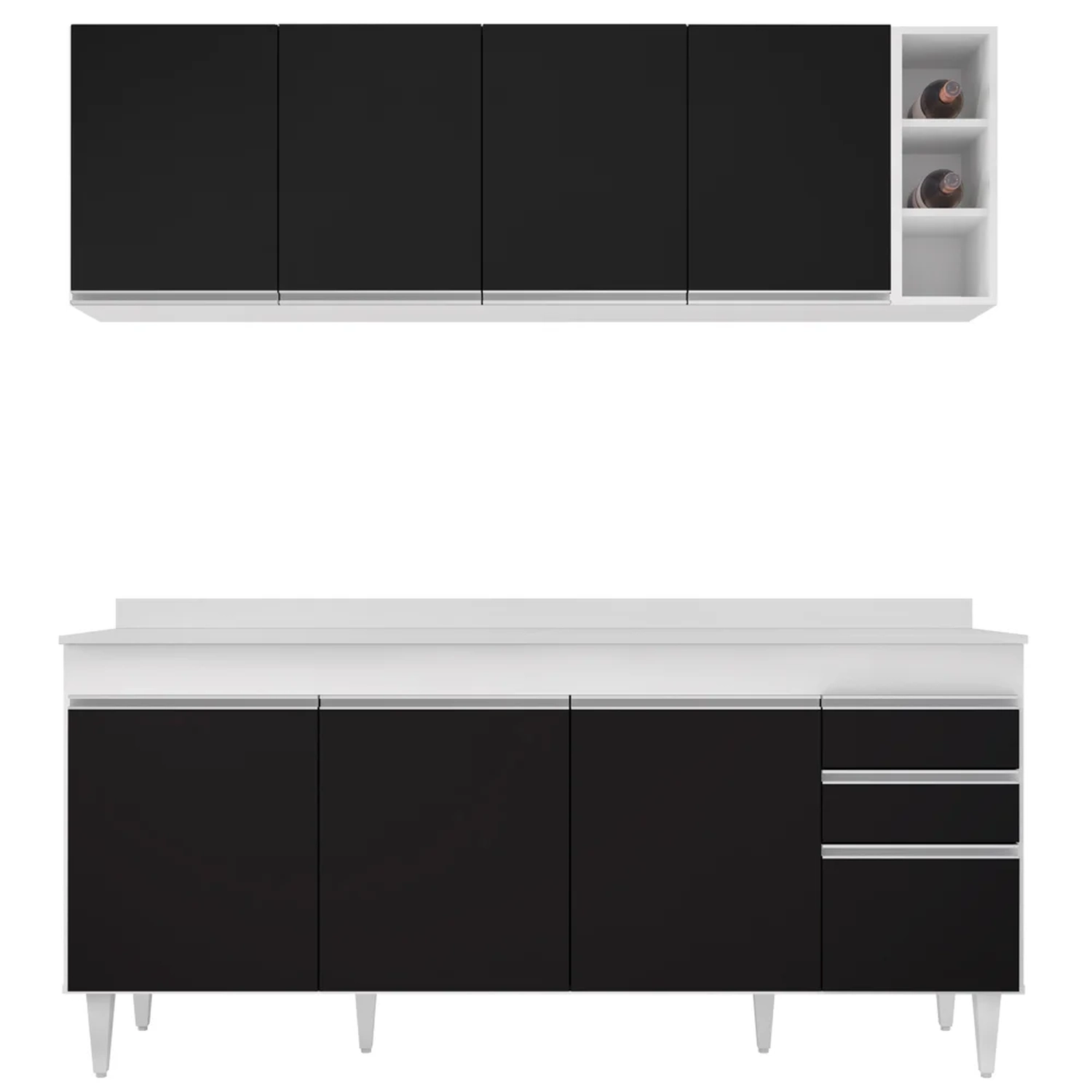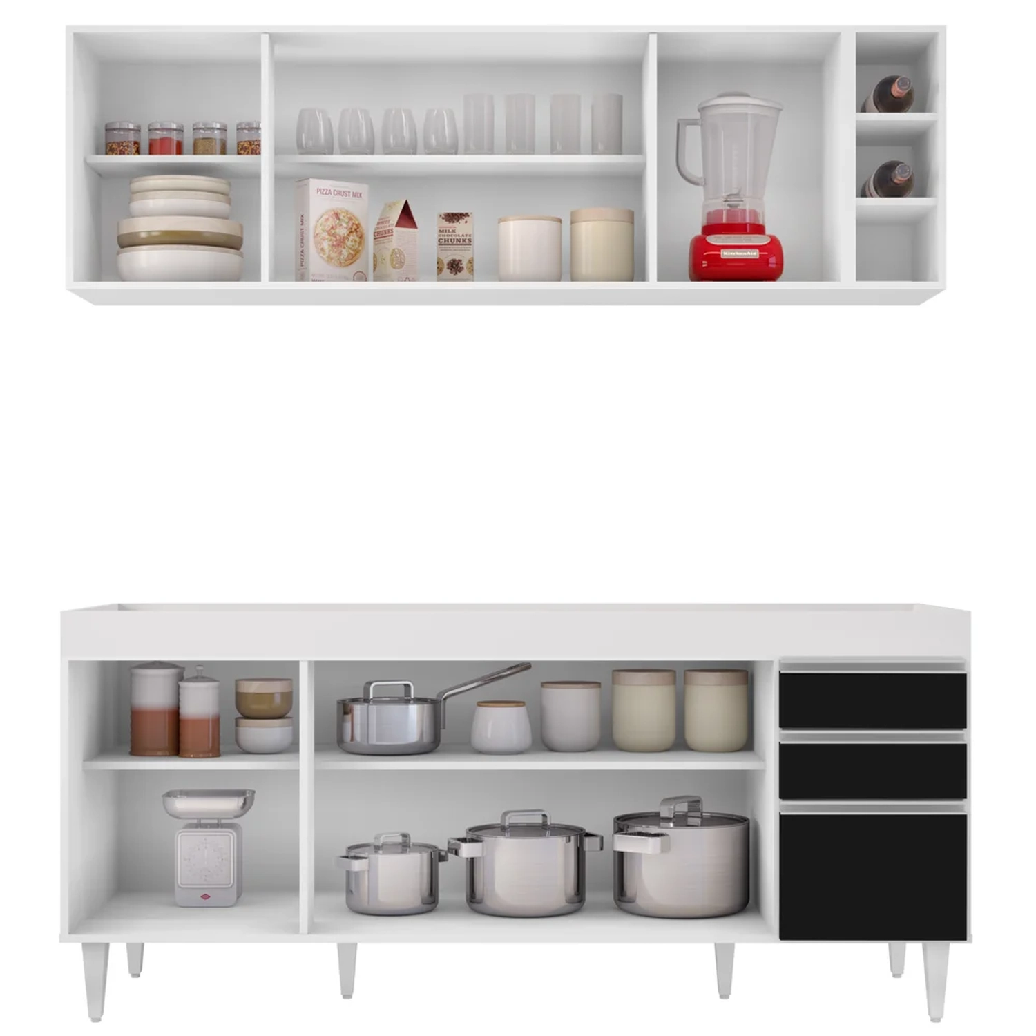 Em um cômodo que exige funcionalidade e beleza o Conjunto Armário Aéreo Nevada e Balcão para Pia 180cm Dallas Branco/Preto da Lumil é a escolha perfeita para a sua Cozinha! Vem conhecer os detalhes!