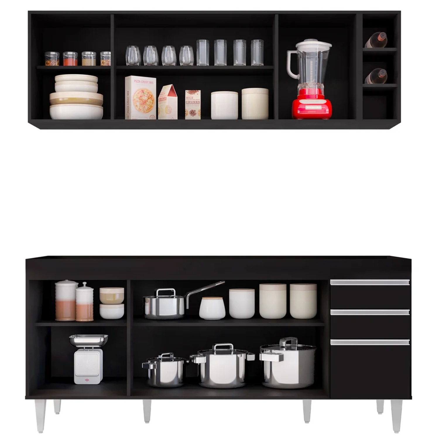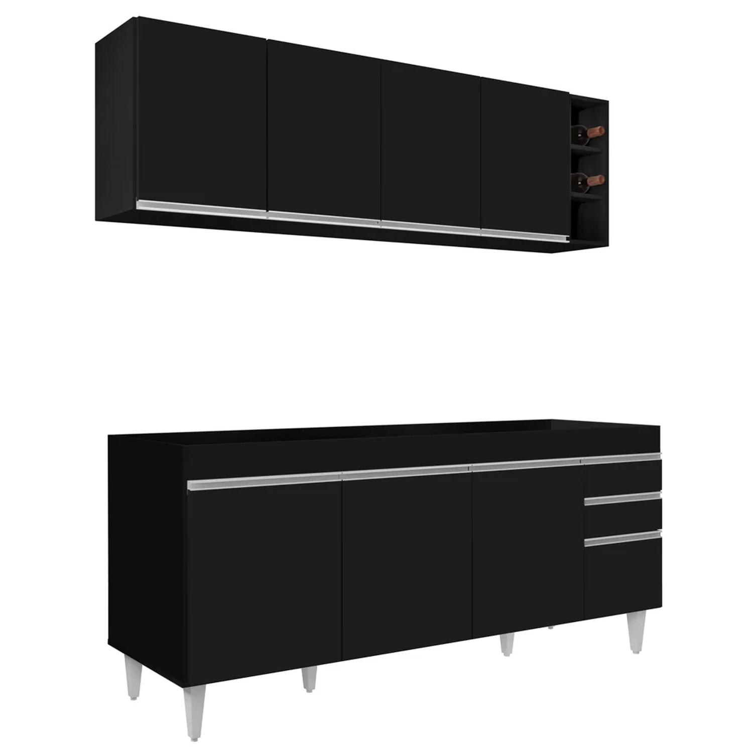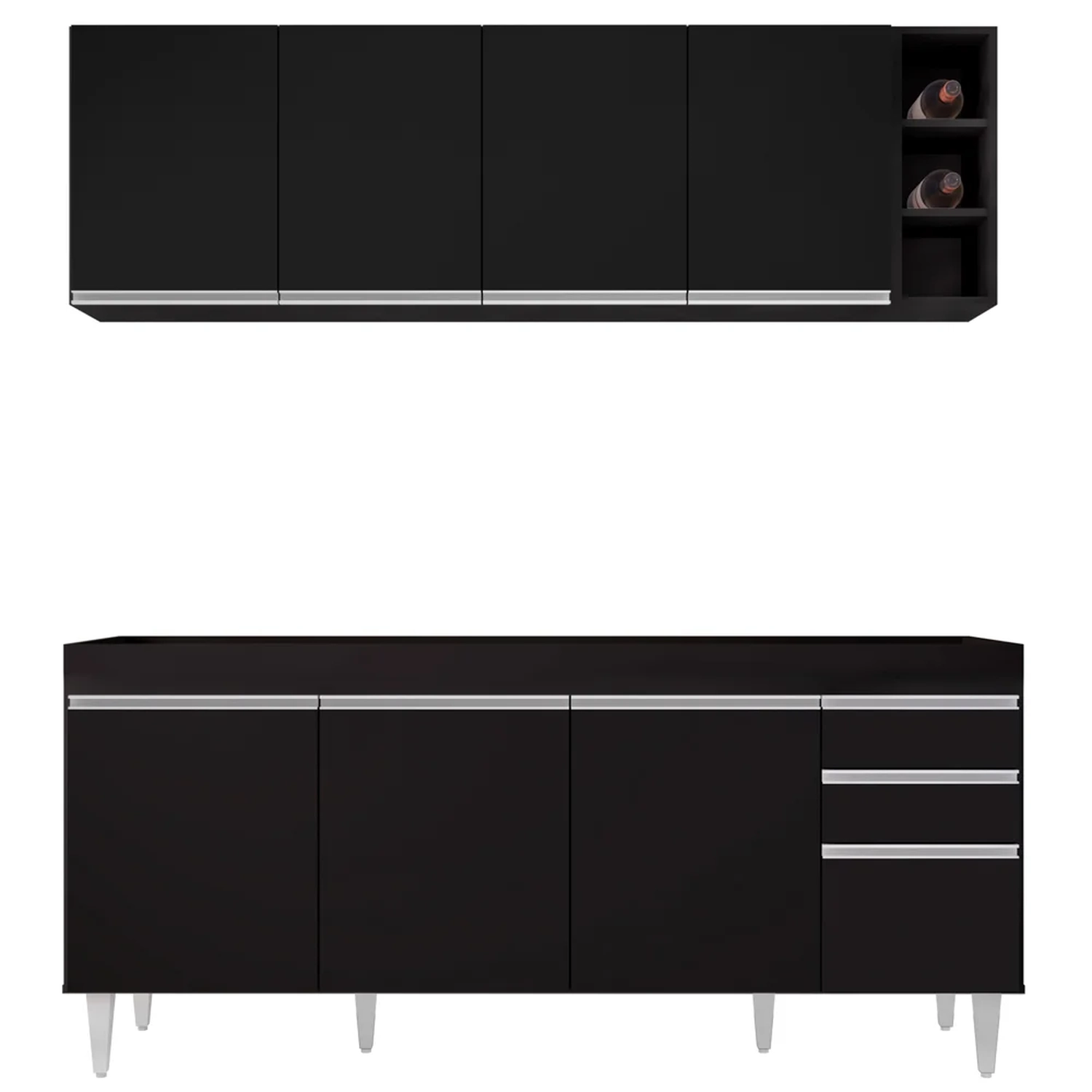 Em um cômodo que exige funcionalidade e beleza o Conjunto Armário Aéreo Nevada e Balcão para Pia 180cm Dallas Preto da Lumil é a escolha perfeita para a sua Cozinha! Vem conhecer os detalhes!