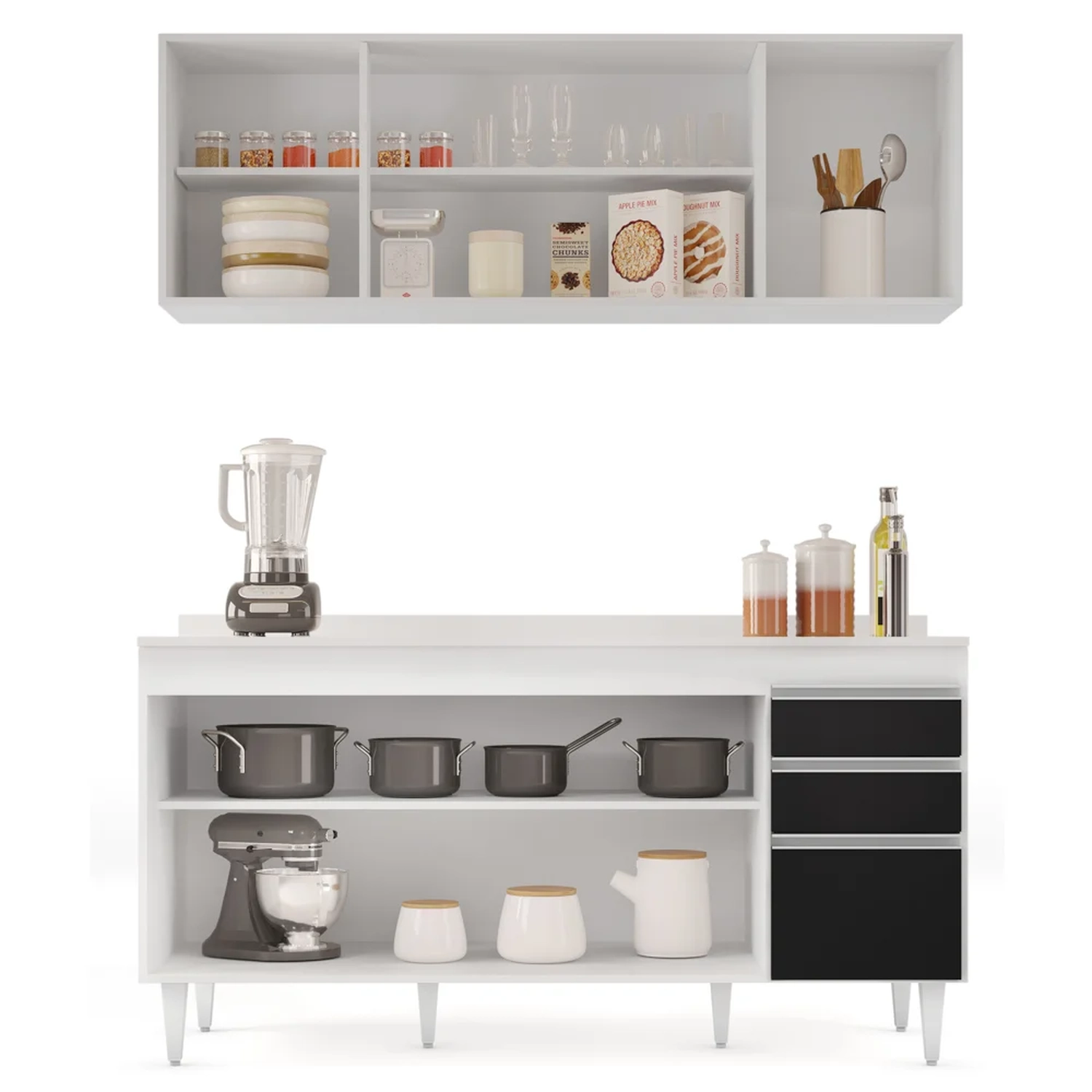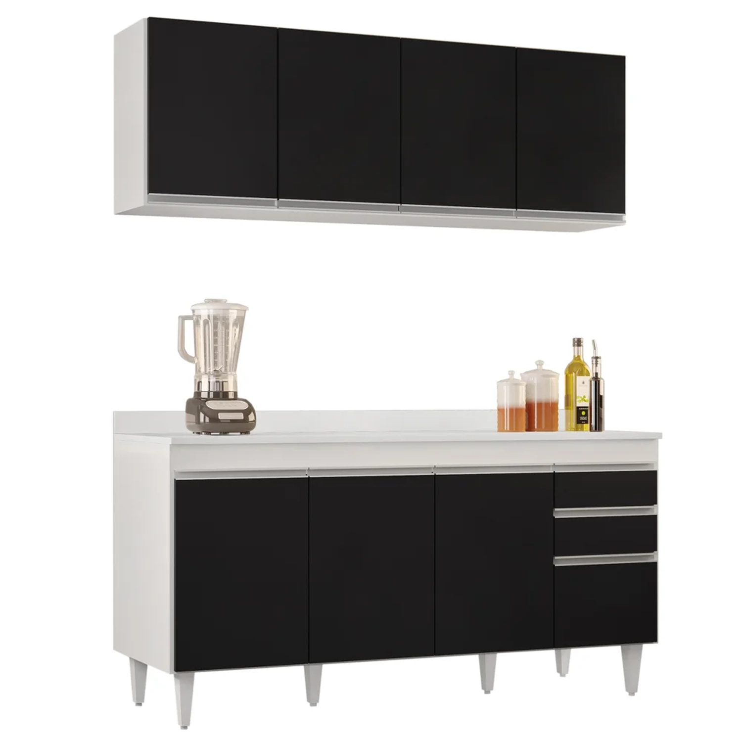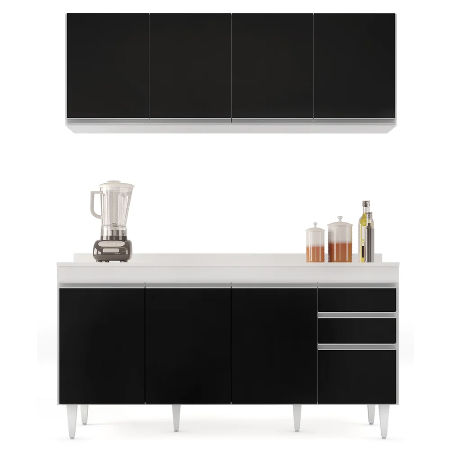 Se você procura uma Cozinha moderna e completa, vem conhecer o Armário Aéreo Nevada e Balcão para Pia com Tampo 160cm Arkansas Branco/Preto, da Lumil!