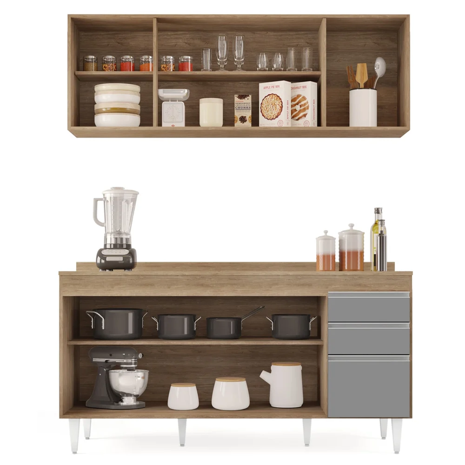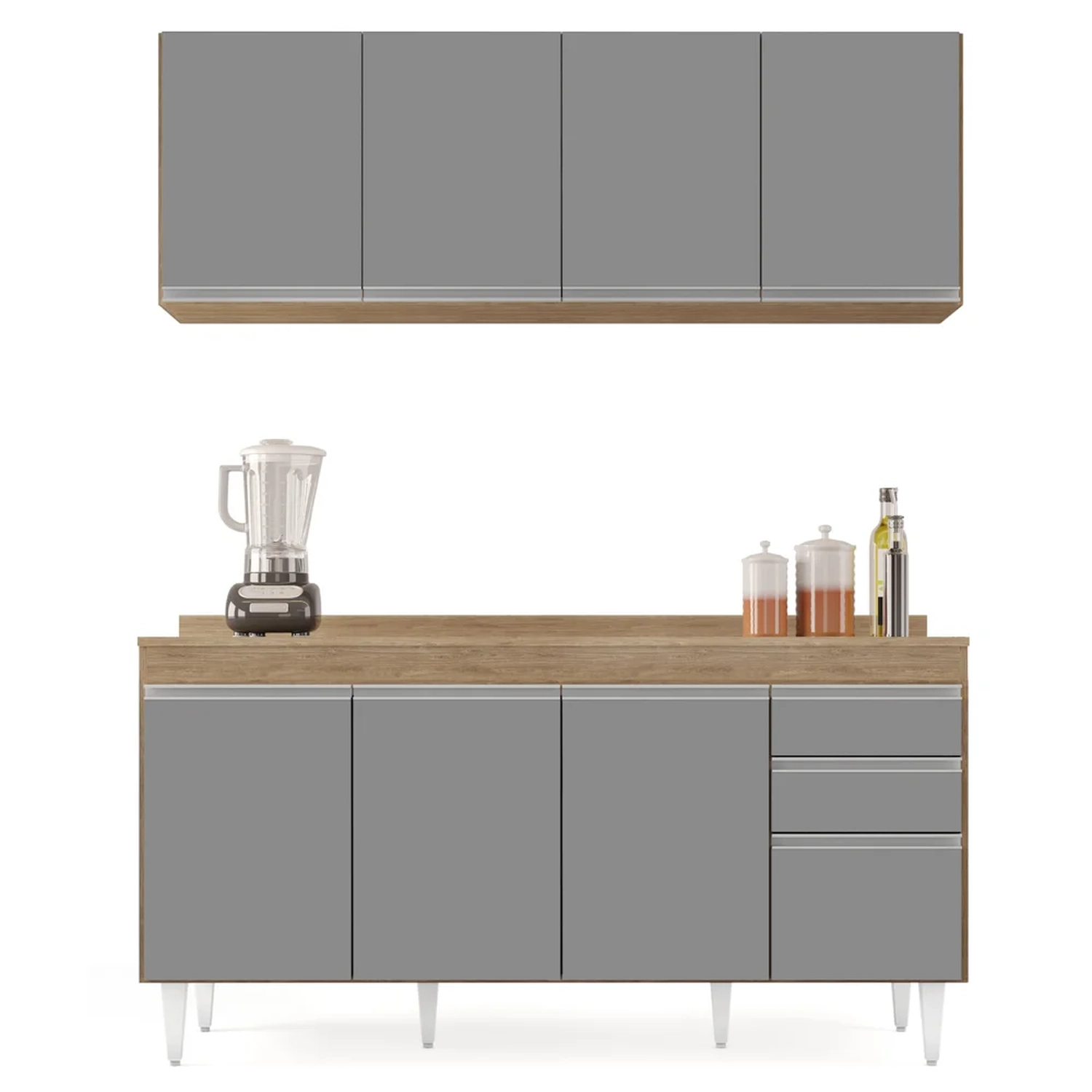 Se você procura uma Cozinha moderna e completa, vem conhecer o Armário Aéreo Nevada e Balcão para Pia com Tampo 160cm Arkansas Castanho/Cinza, da Lumil!