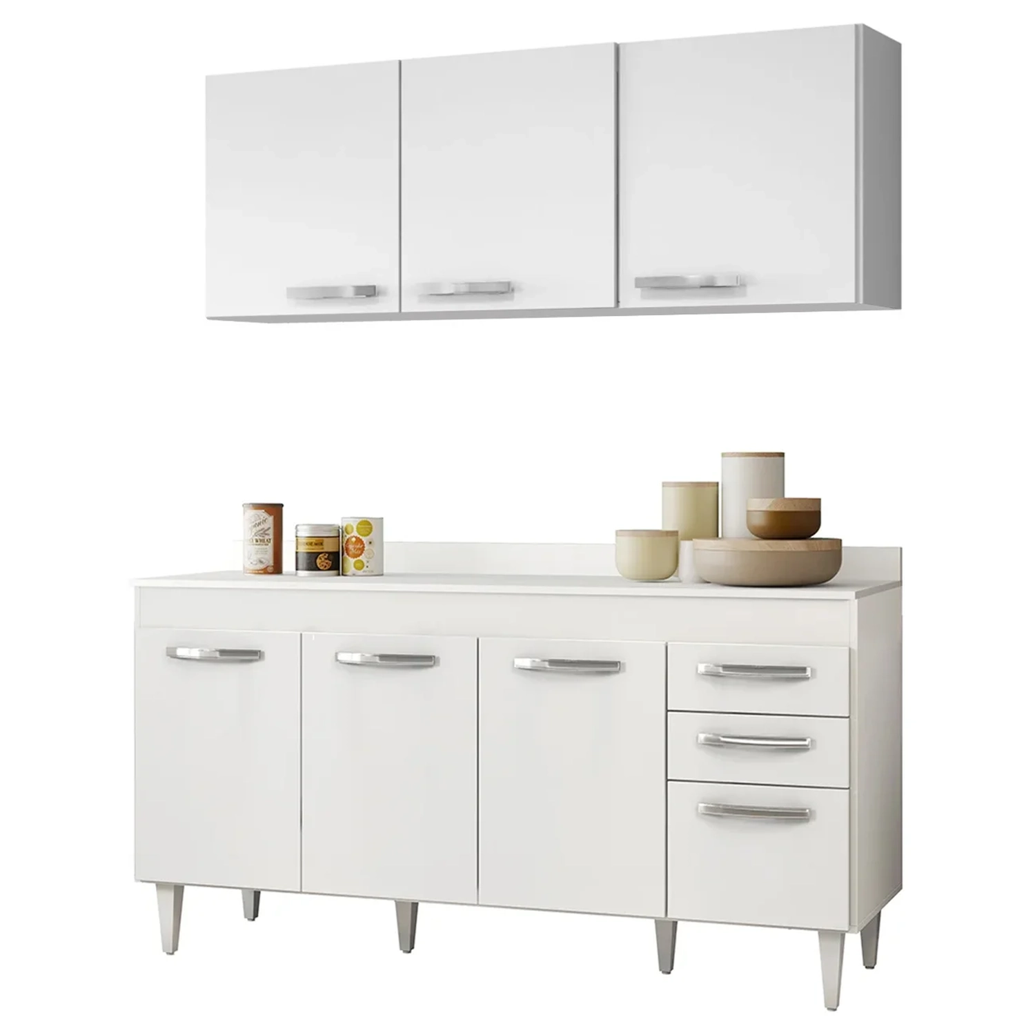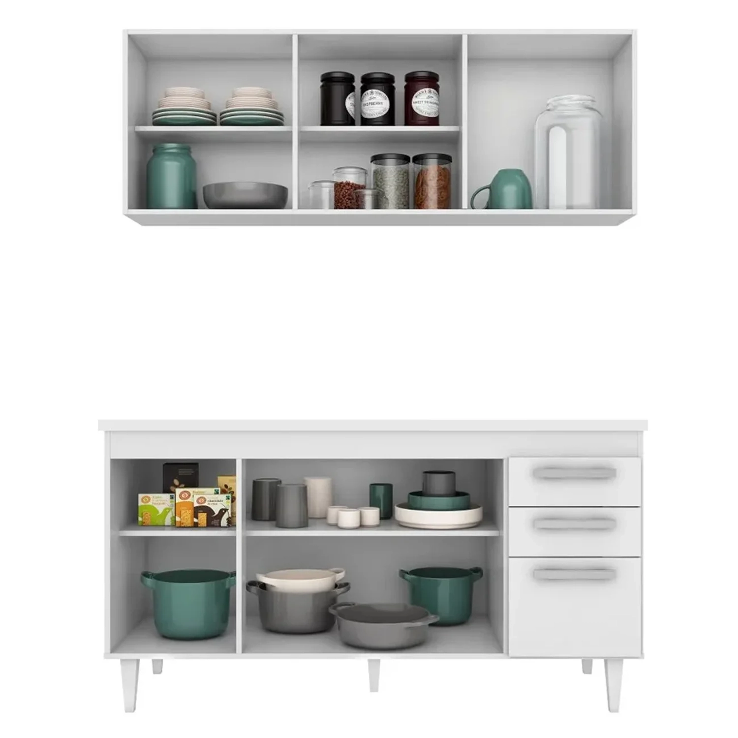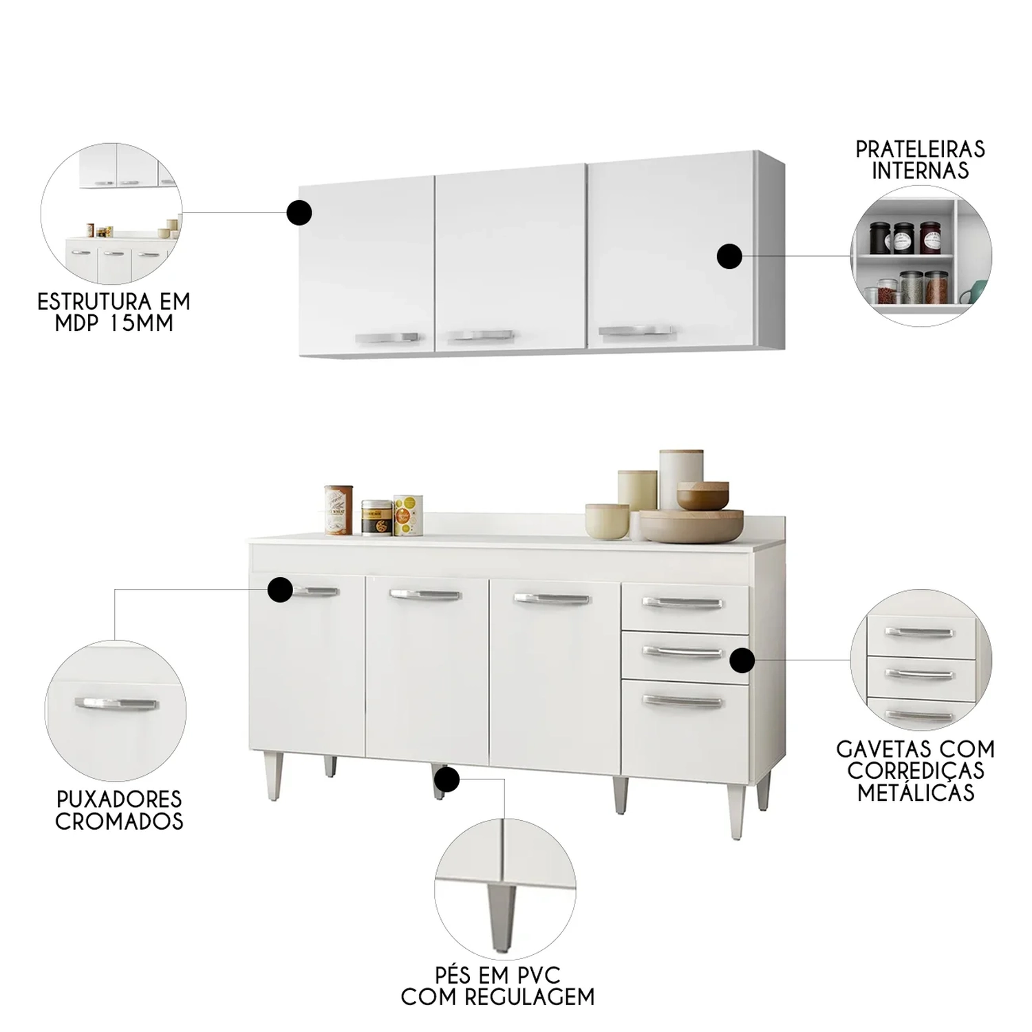 Conteúdo da Embalagem: 1 Armário aéreo, 1 Balcão, 1 Tampo.