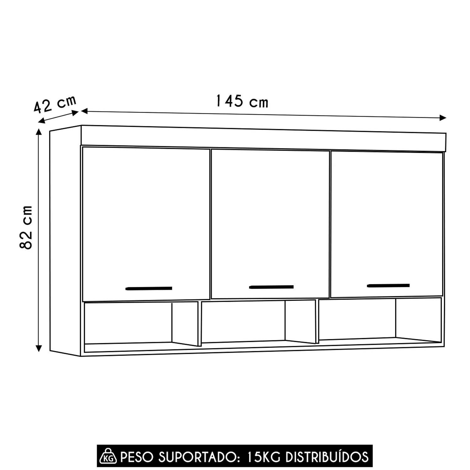 Ele possui três portas com dobradiças metálicas e puxadores em polímero, garantindo durabilidade e um visual moderno, sua abertura é super prática para o uso diário.