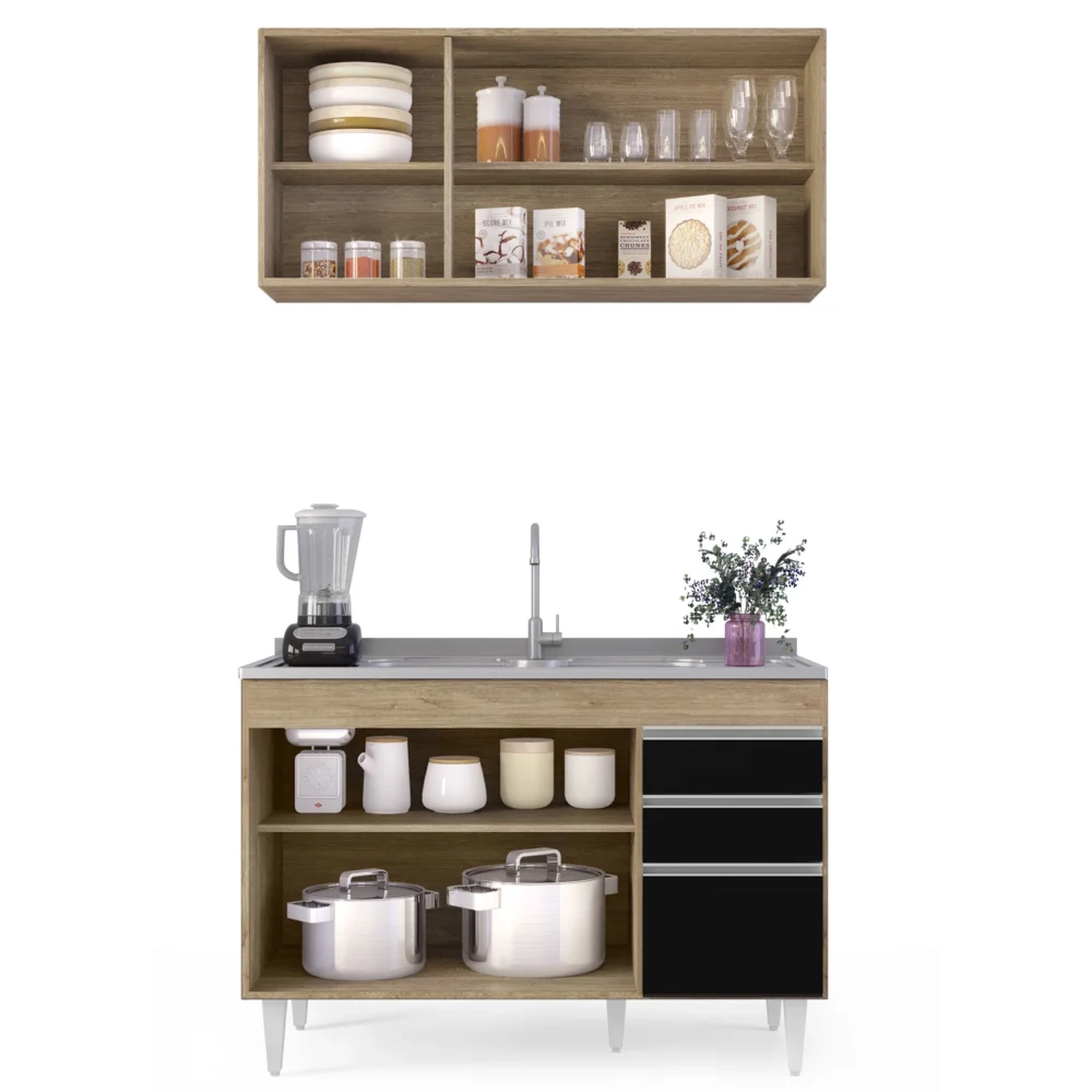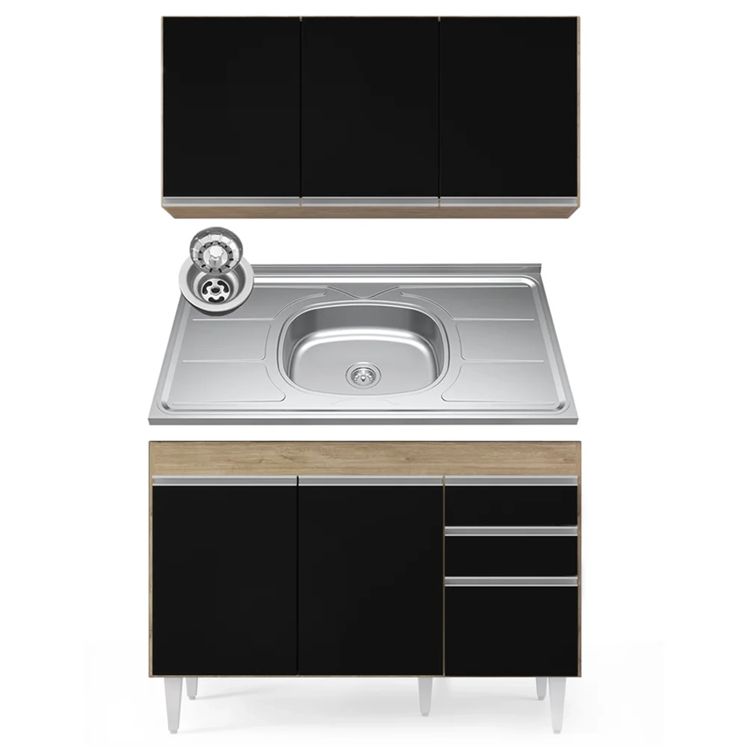 Conteúdo da Embalagem: 1 Armário Aéreo, 1 Balcão, 1 Pia.