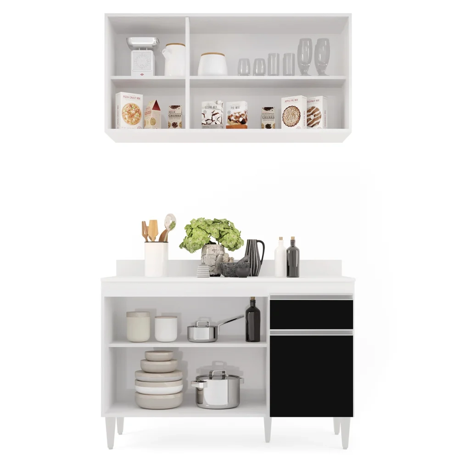 Armário Aéreo Virgínia e Balcão com Tampo 120cm Arizona Branco/Preto - Lumil