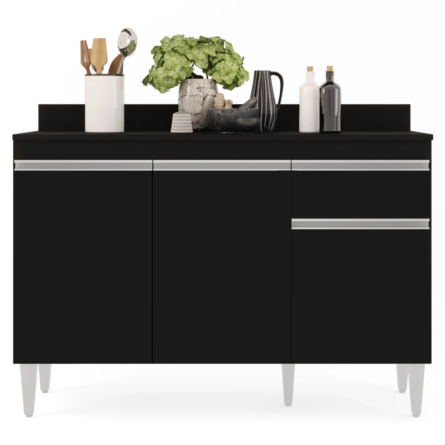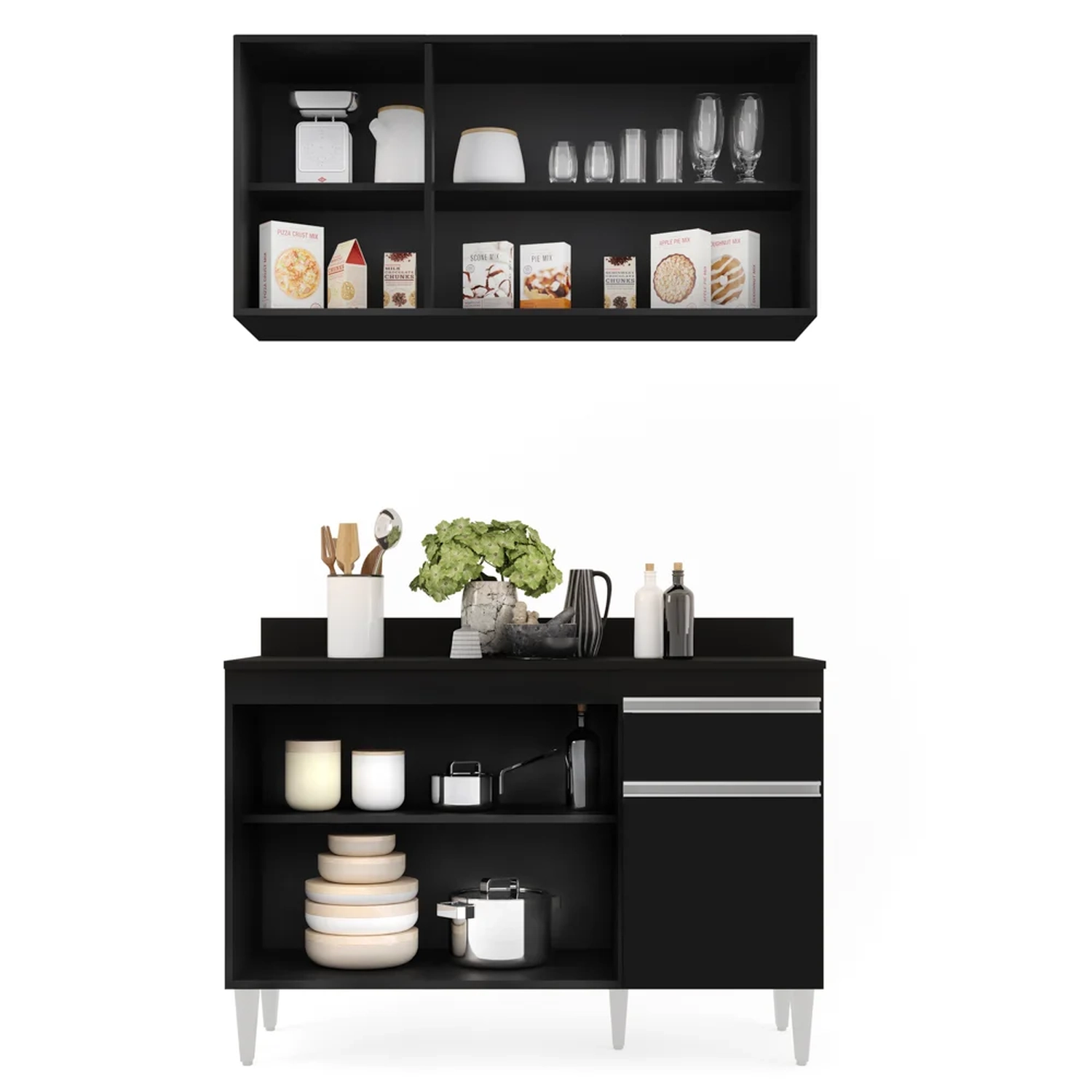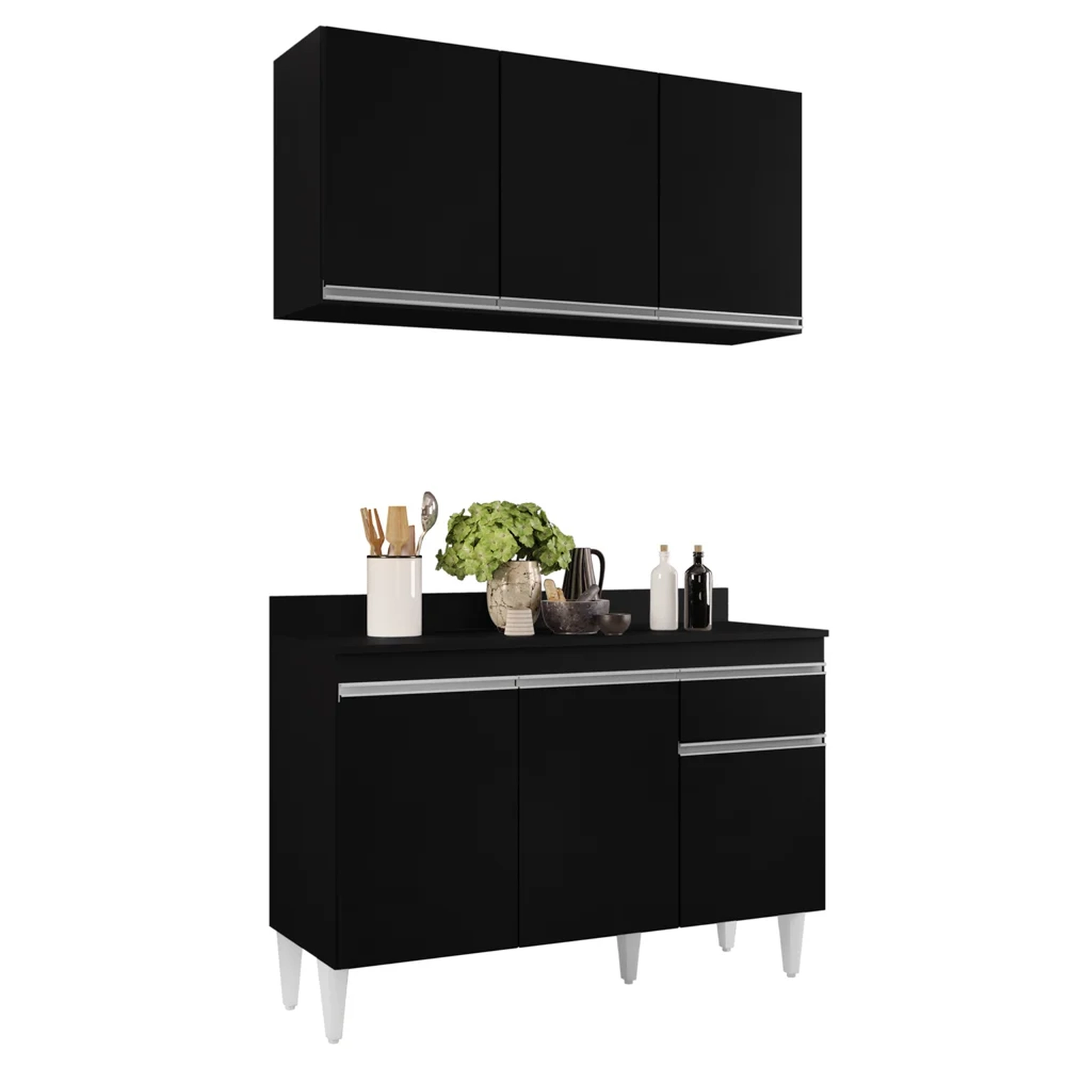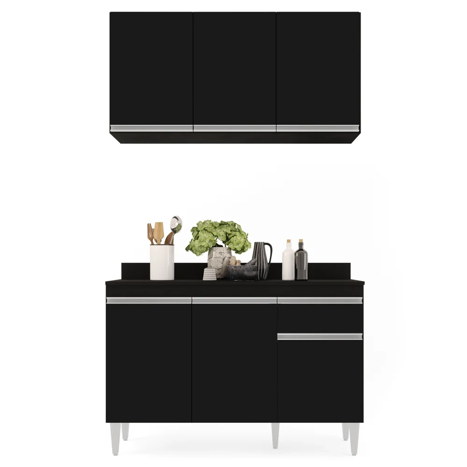 Armário Aéreo Virgínia e Balcão com Tampo 120cm Arizona Preto - Lumil