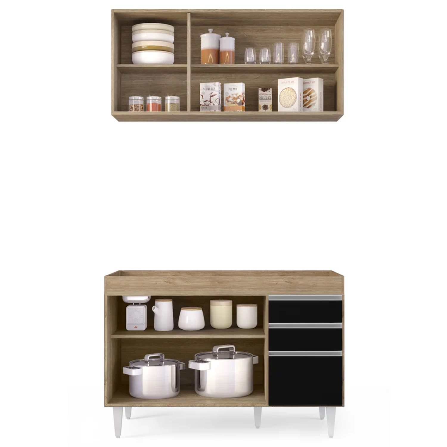 Conteúdo da Embalagem: 1 Armário Aéreo, 1 Balcão.