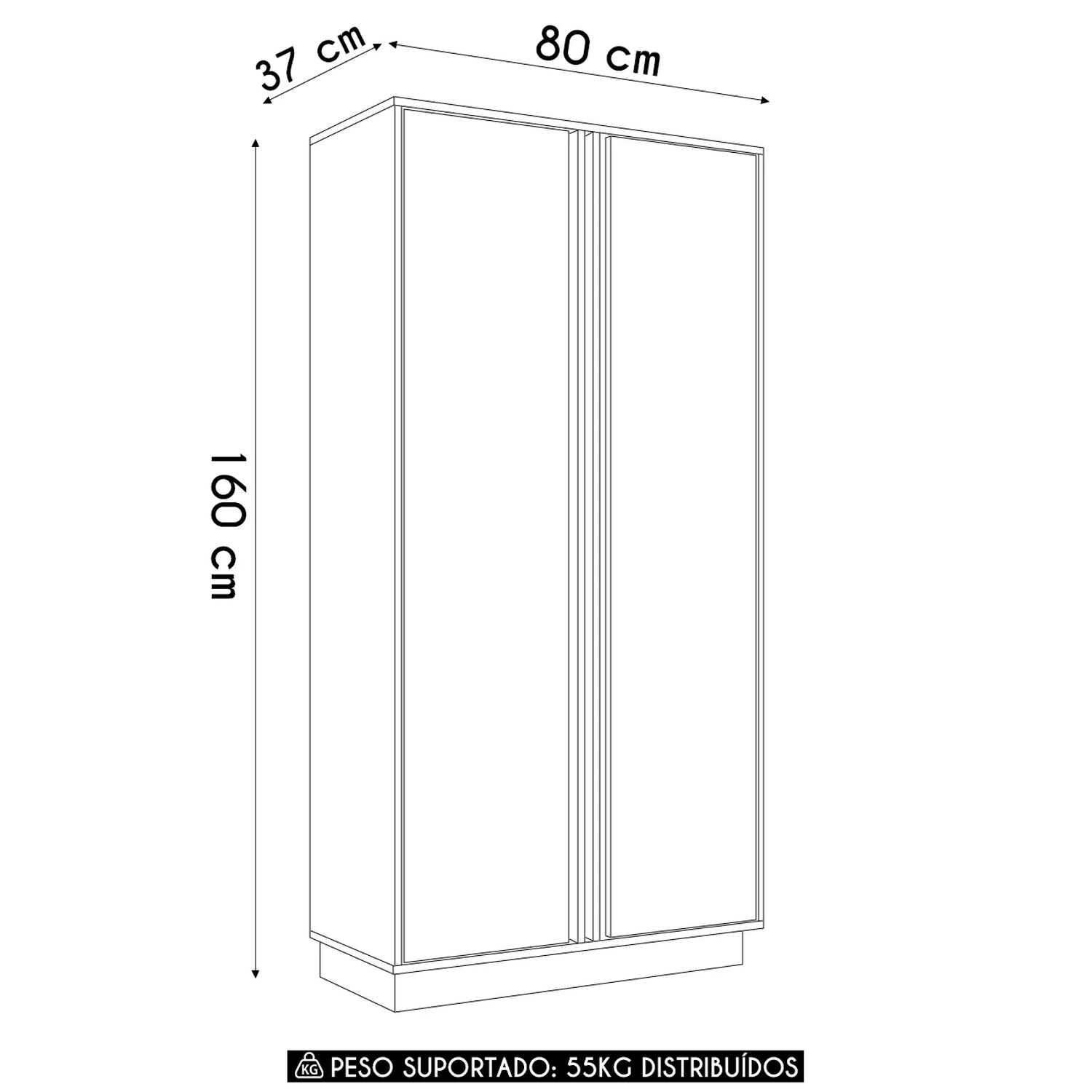 O Armário Multiuso conta com duas portas passantes com dobradiças metálicas e prateleiras internas, que facilitam a organização de forma discreta e acessível. Tudo fica bem distribuído e ao seu alcance no dia a dia.