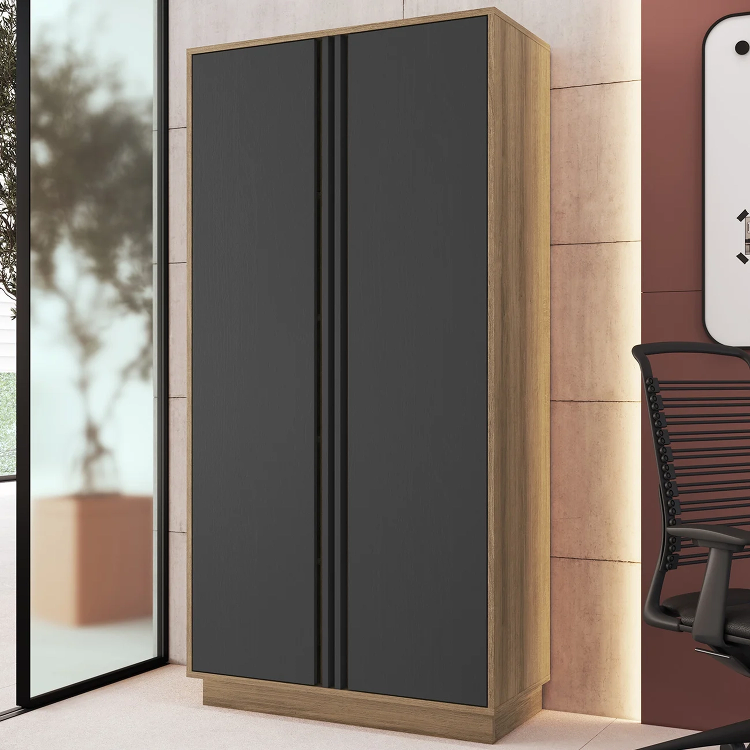 Armário Alto Para Escritório 80cm 2 Portas Rael Mel/Grafite F10