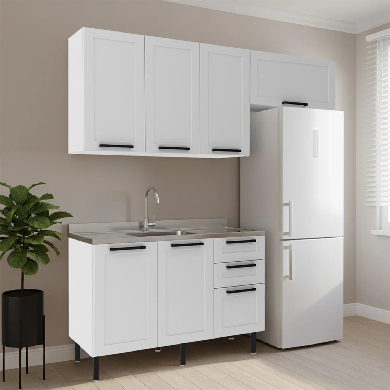 Armário Cozinha 3 Peças Balcão Com Pia CP4A Zaya Branco T01 - Mpozenato