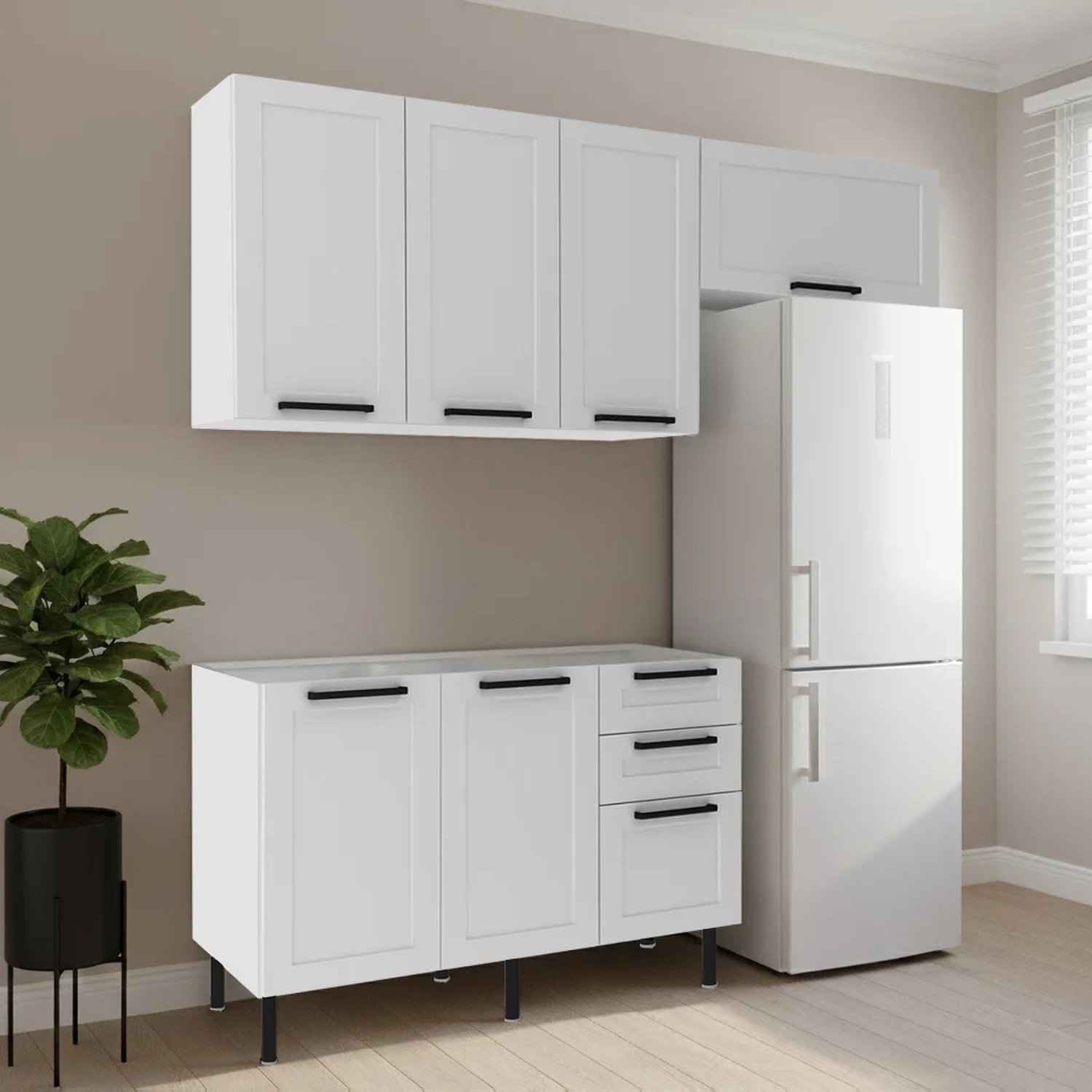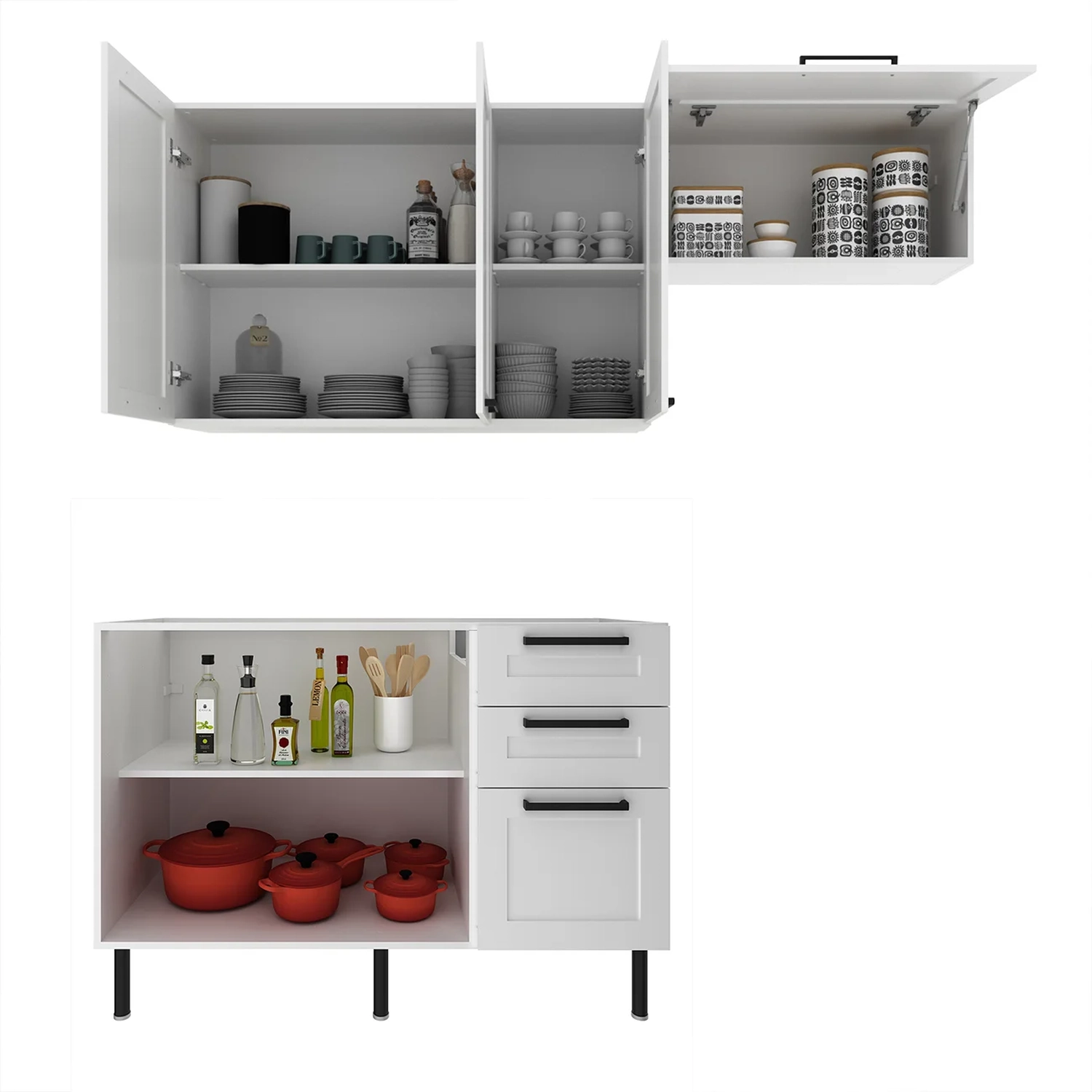 Armário Cozinha 3 Peças Balcão Para Pia CP4A Zaya Branco T01 - Mpozenato