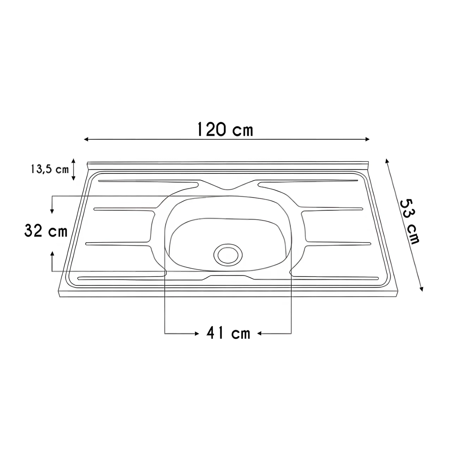 Pia Inox 120cm: 120 x 14 x 53 cm.
