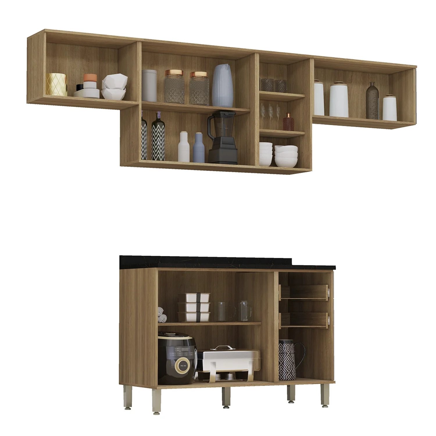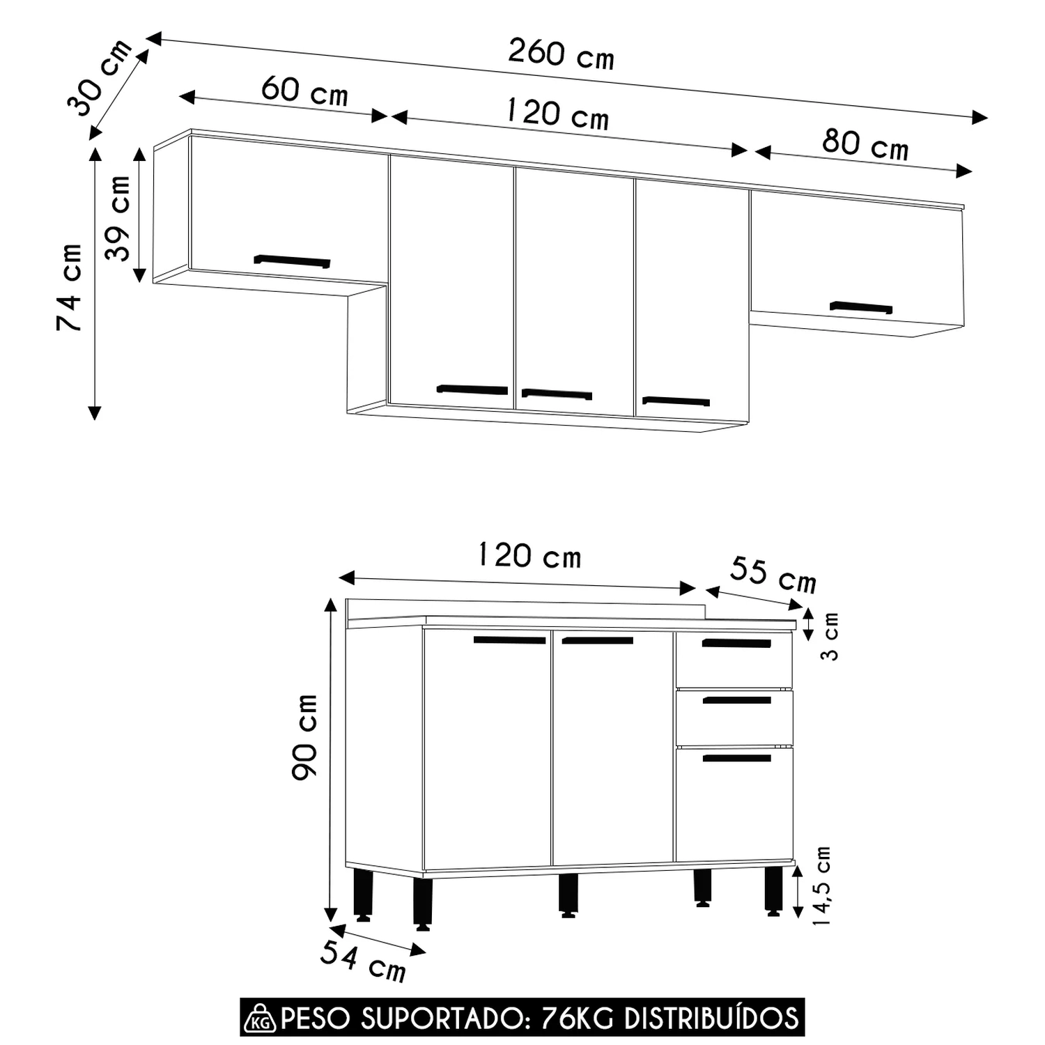 Conteúdo da Embalagem: 1 Aéreo 60cm, 1 Aéreo 80cm, 1 Aéreo 120cm, 1 Balcão 120cm, 1 Tampo 120cm.